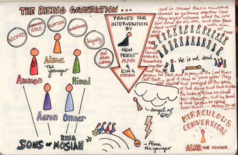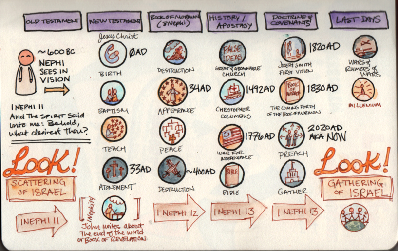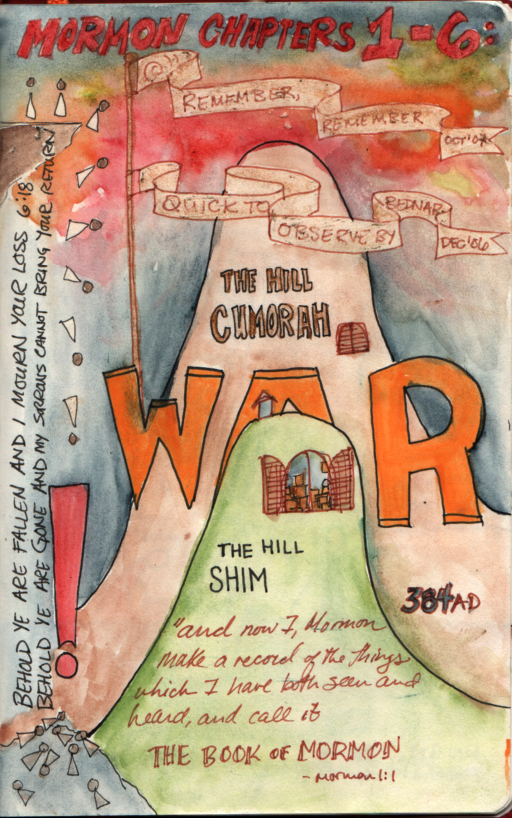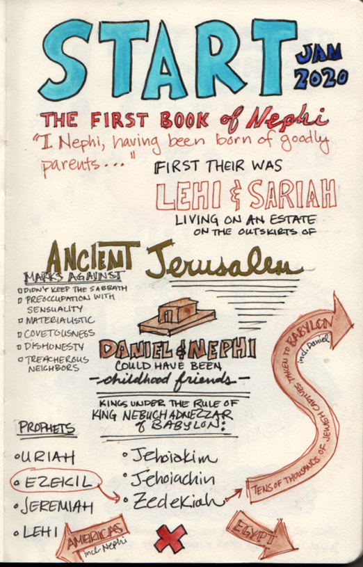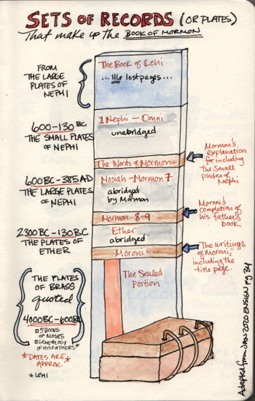 Scripture study for the year 2020 for The Church of Jesus Christ of Latter-Day Saints was an in depth week-by-week study of The Book of Mormon. To aid in this study I did ink and watercolor studies – usually one a week (more so at the end so I didn’t run out of paper in the pre-bound book I was working out of). Some of these entries are informatic, some are chronology, some are narrative, and some are principle or moral based teachings.