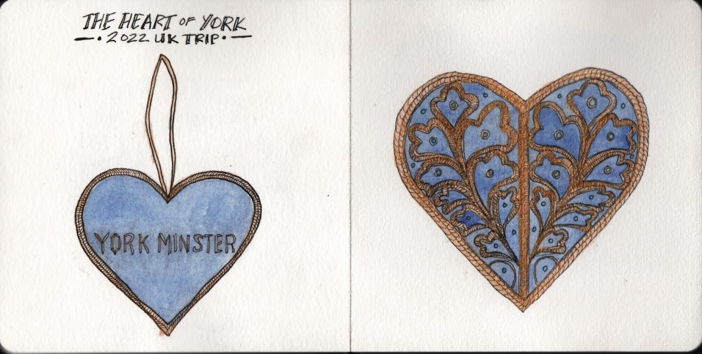 These are ink and watercolor. They are in a store-bought hardbound square watercolor book that is 5.5 x 5.5″ by Hand-Book Journal Co. Someday I hope to fill the whole book as documentation of the stories and memories associated with my whole Christmas ornament collection.