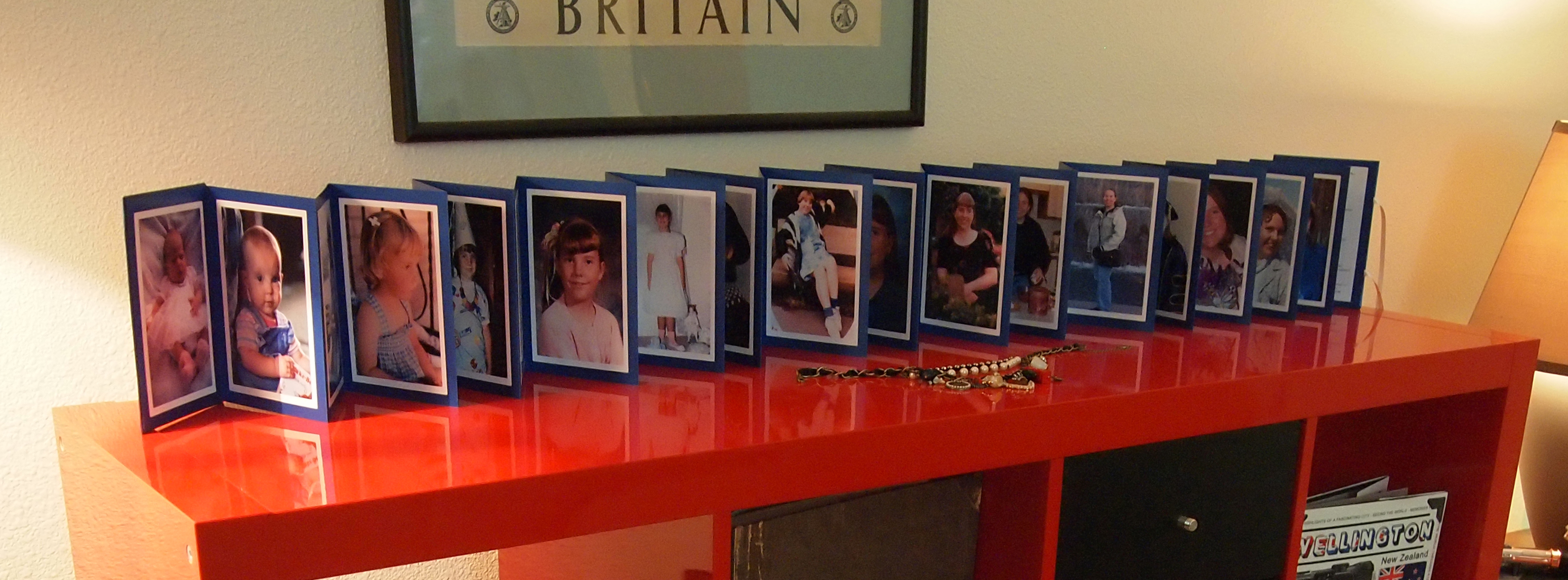 This project was made for my 30th Birthday – it contains one picture of me for each year of life. It was made to display during my birthday party. I made a similar book for my sister’s 18th birthday, 2013.