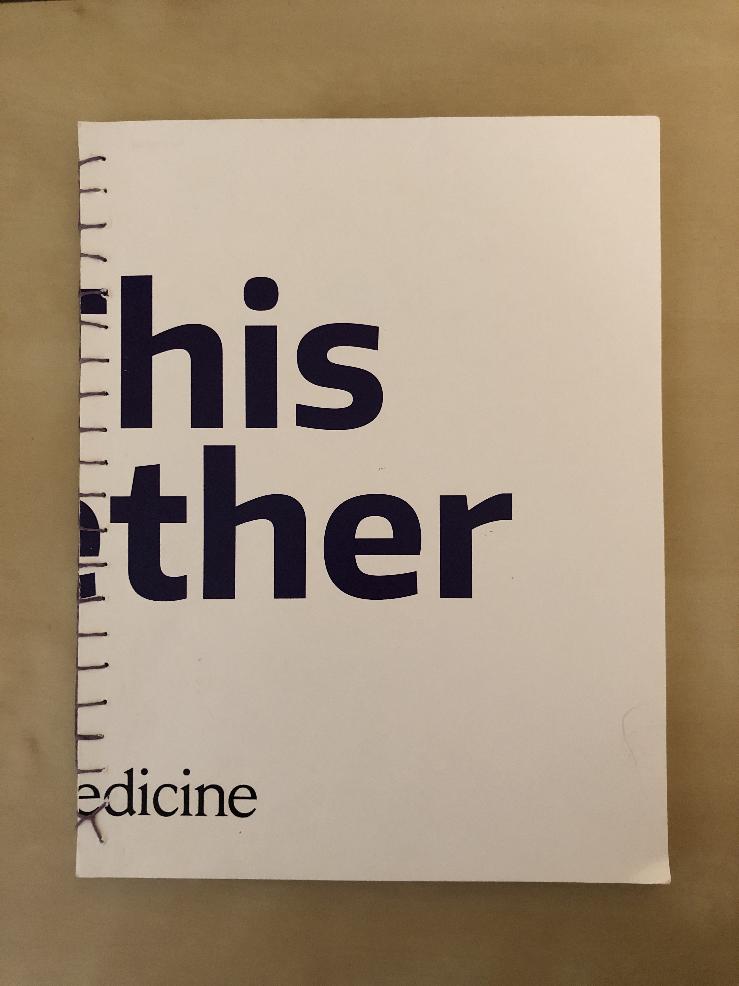 The cover of this book is made out of a poster printed as part of a socially distanced solidarity event between those that work at the hospital, and first responders (who parked outside and held signs back at us).