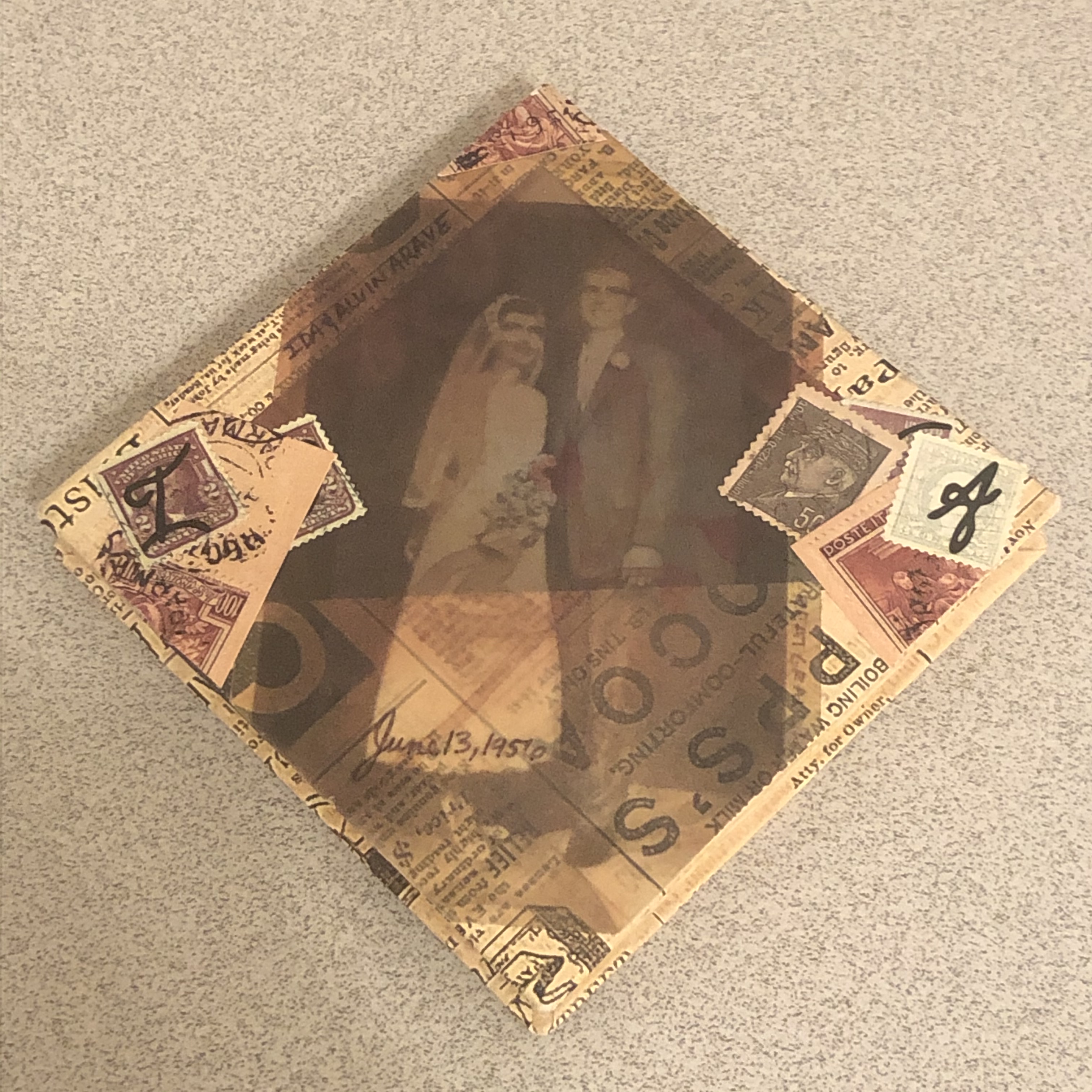 2006 June – Commemorative art book made of ancestor photos printed on velum for my maternal Grandparent’s 50th Wedding Anniversary, and returned to me upon their passing.