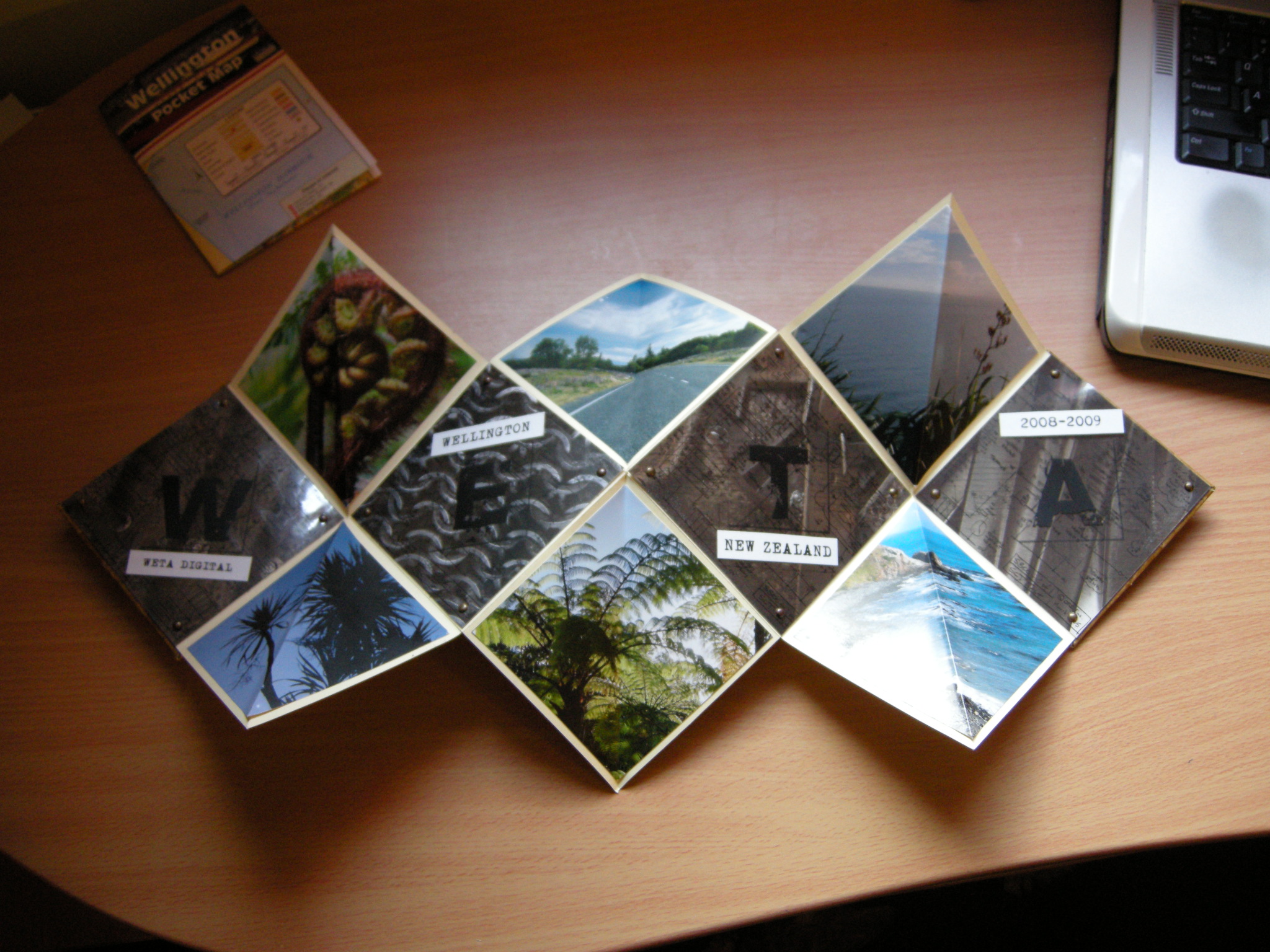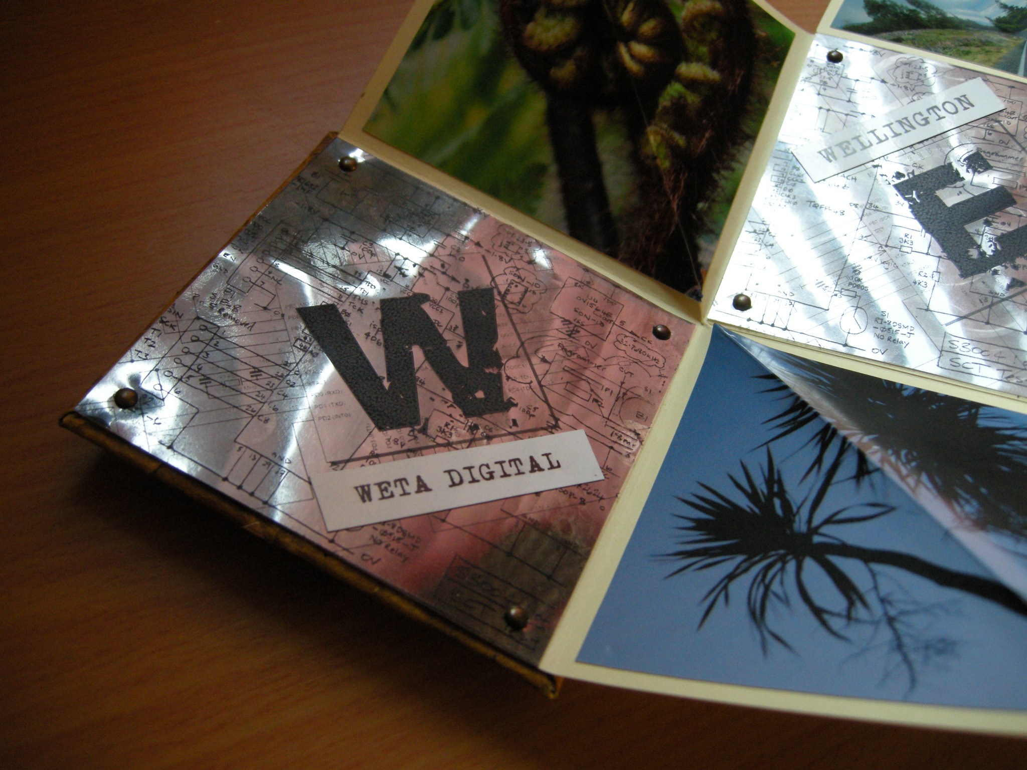 2009, WETA Digital handmade memory book for friend Rob upon the end of his ex pat stint in Wellington, NZ.