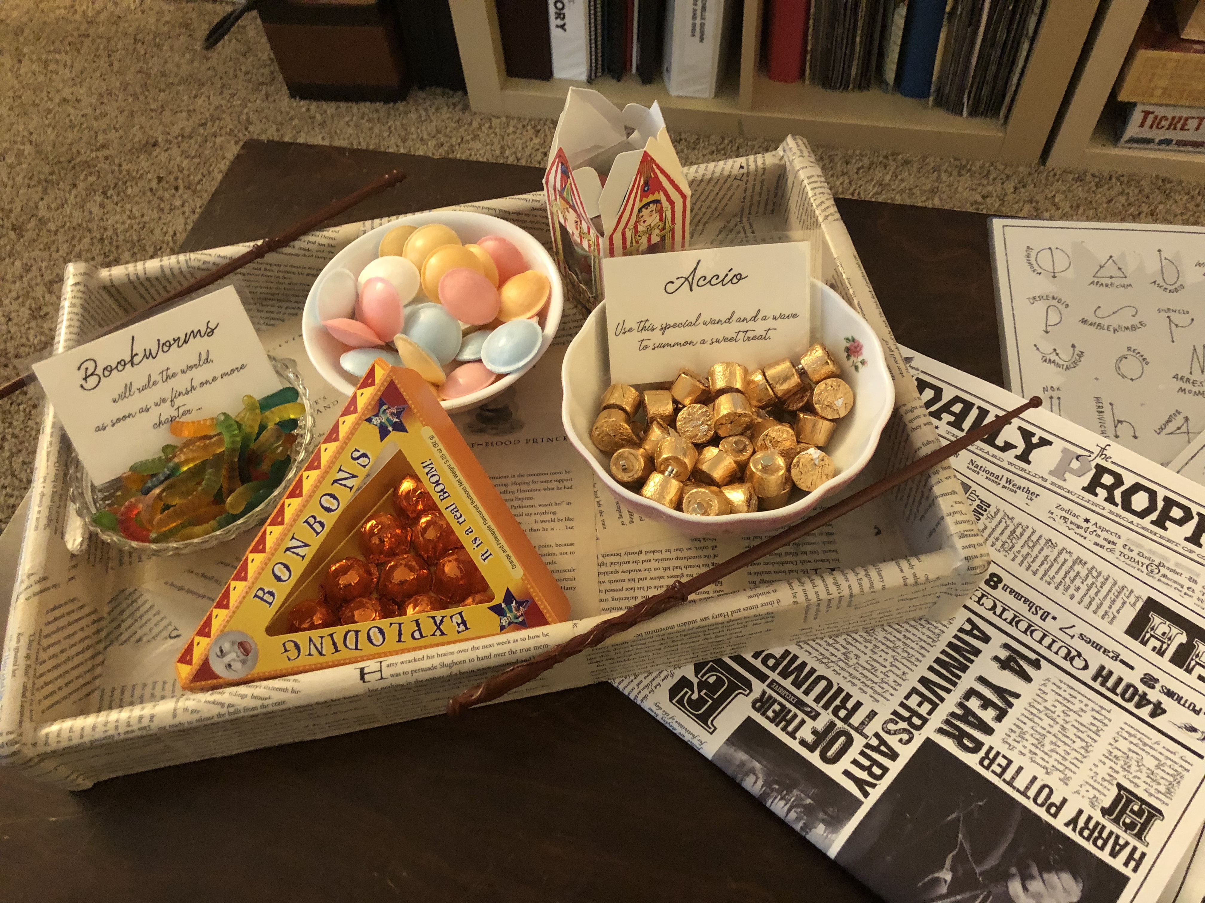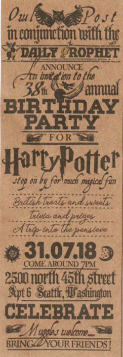 This project was inspired after the month before seeing Harry Potter and The Cursed Child in London. The idea of Harry as an adult was interesting to explore, and I decided to hold a contemporary birthday party. The other reason this party happened was my 2018 initiative to have more “play,” time in my schedule – a place and excuse to more frequently use the right-side of my brain and do things, “just for fun.” This party was a great example of getting together, “just for fun.”