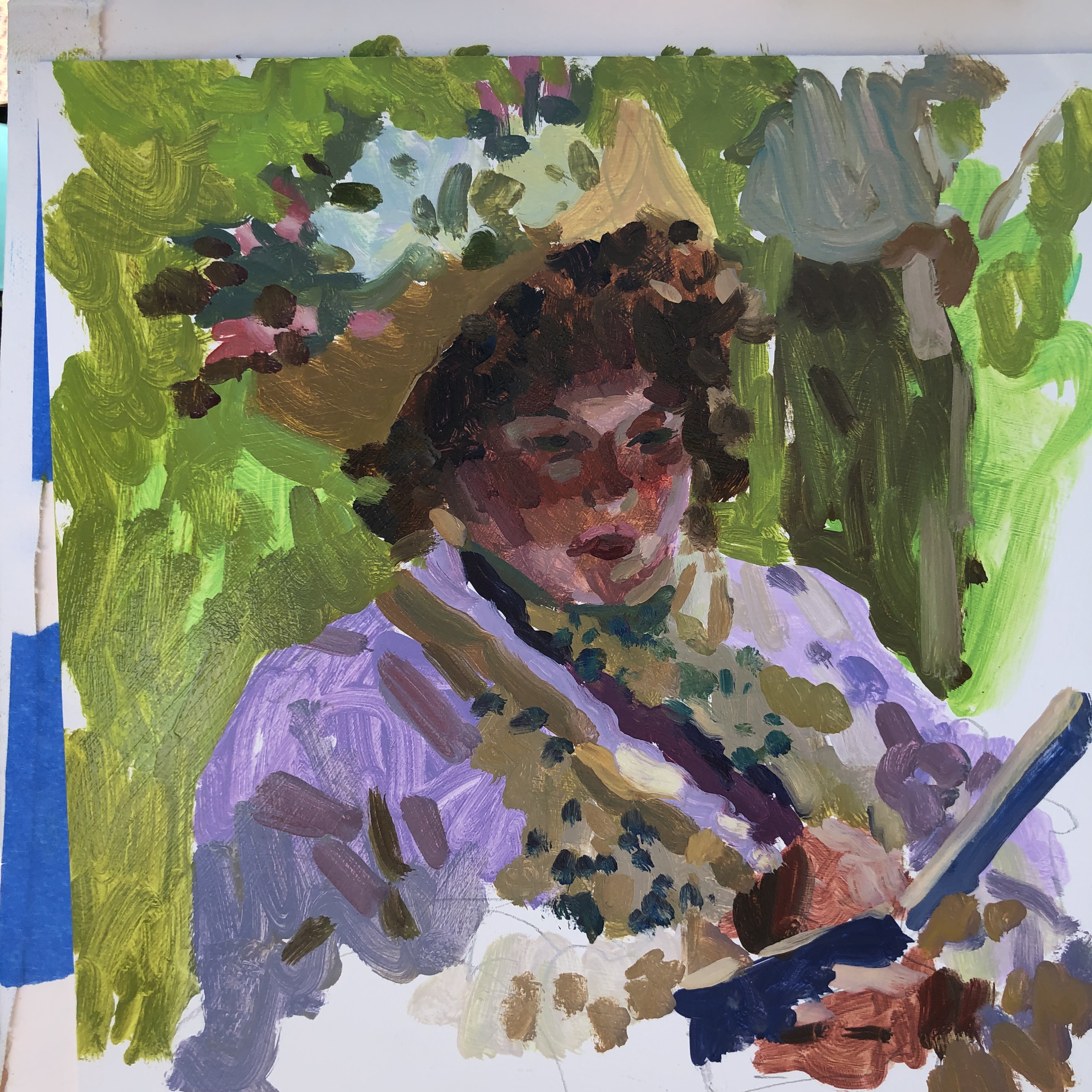 This event celebrated 100 years since women got the vote in the USA. Above are the details of the costume I put together for this picnic. We had the Seattle Mandolin Orchestra come and play, along with a great lecture giving a historical overview of the suffragettes. An urban sketching artist (Leela Wagner) ran across our group and did several studies in oils.