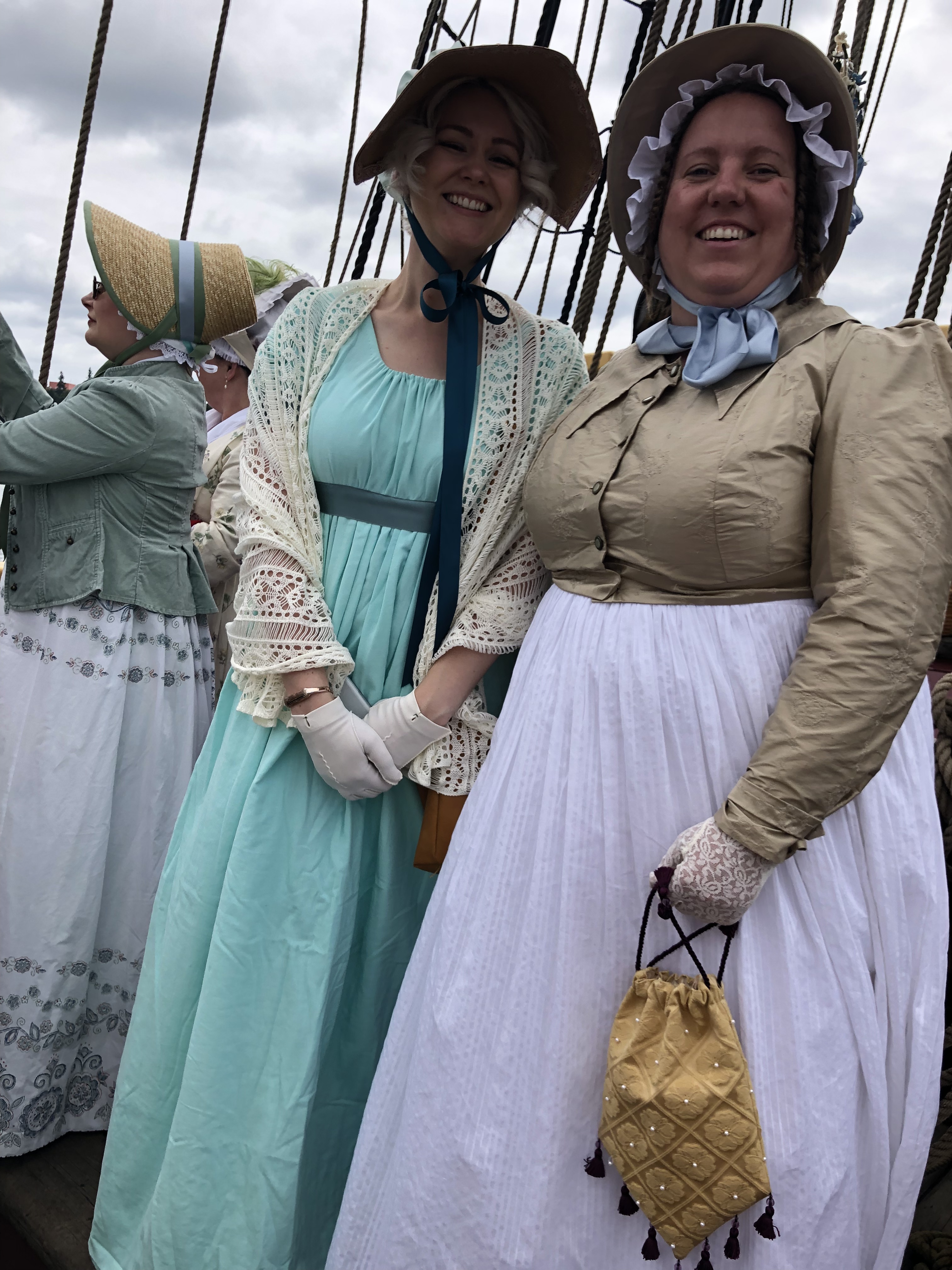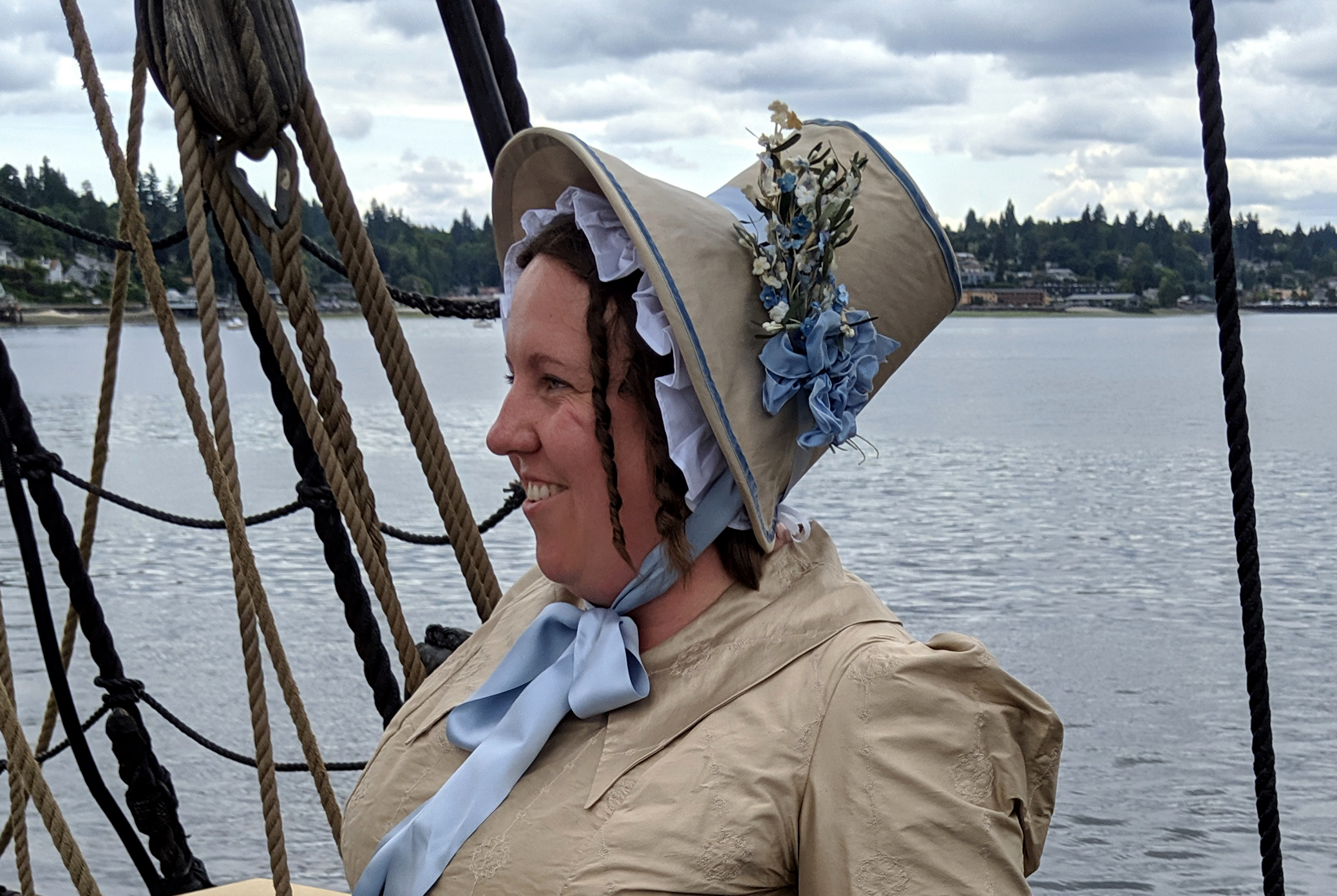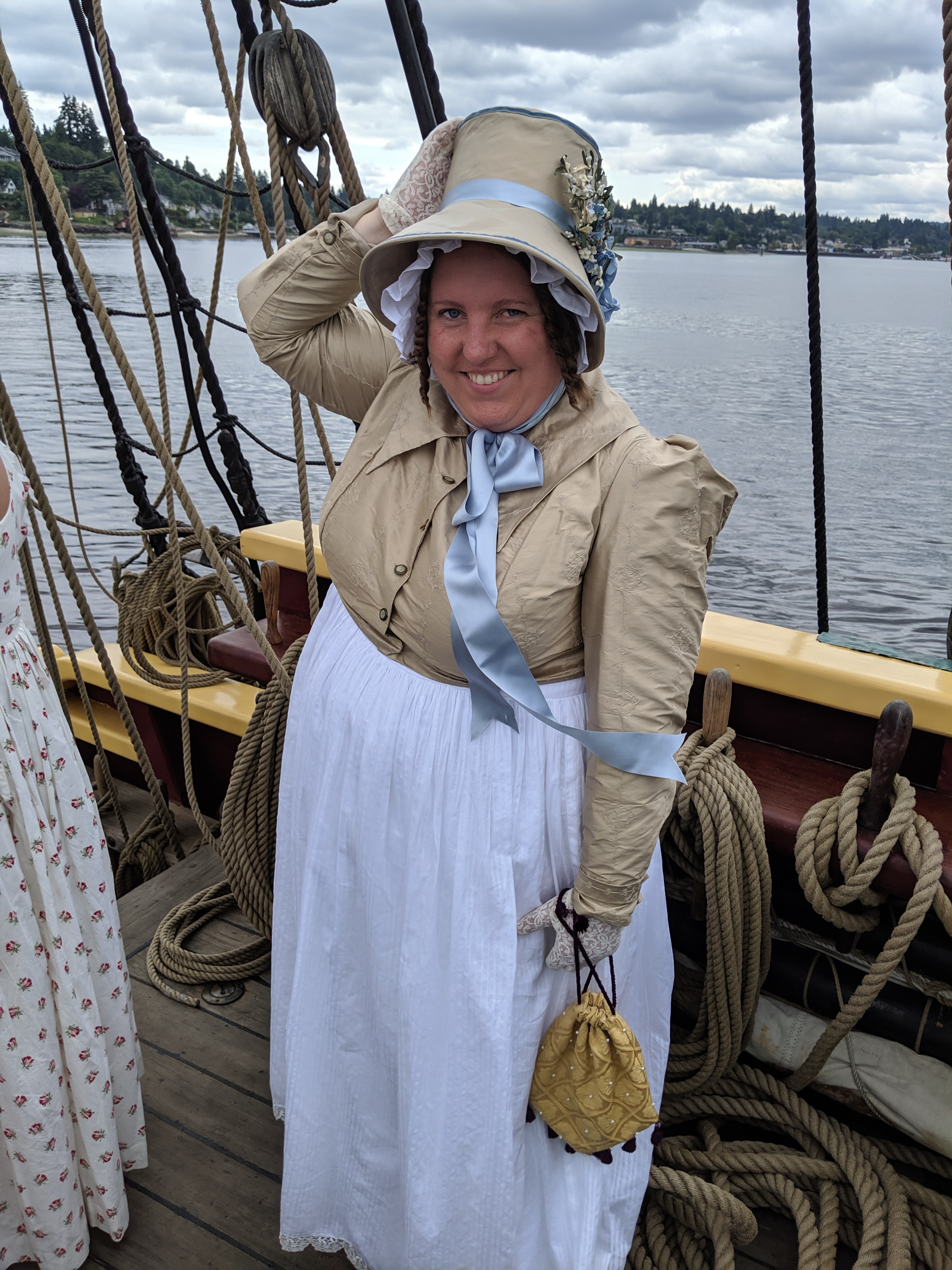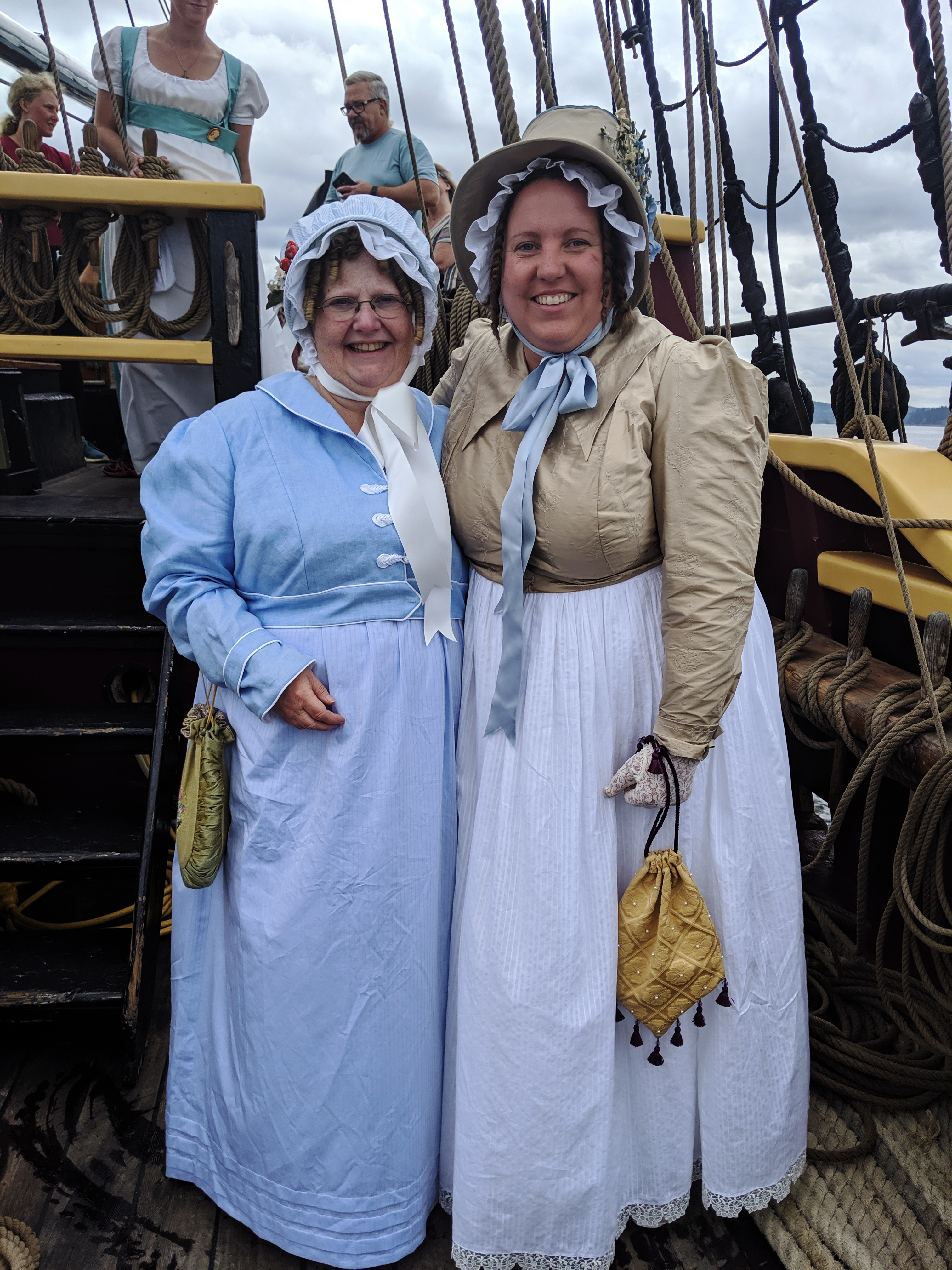 The Washington Regency Society gathered to go sailing on the tall ship Lady Washington. We thought of our ancestors sailing to and from England on tall ships (hopefully bigger than this one!). This event was huge for me, in that sailing on the Lady Washington was a bucket list item for me. The ship is featured in the first Pirates of the Caribbean film as The Interceptor. You can read more about the ship’s history HERE.
