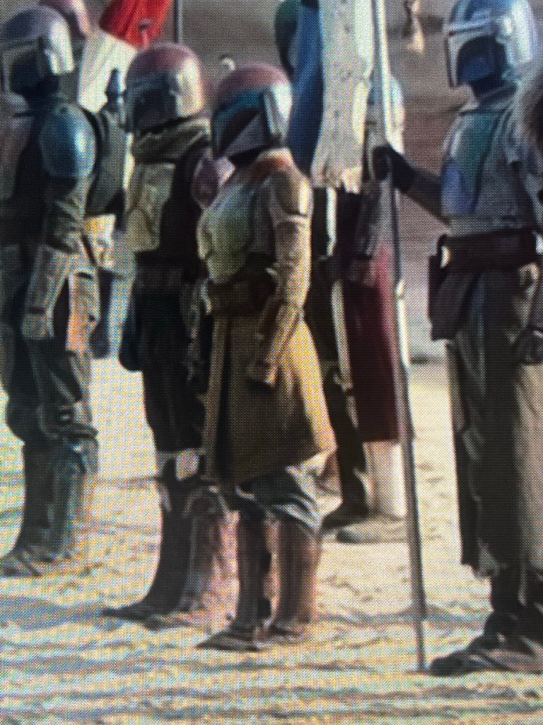 This is a concept start for my project this year – making a Mandalorian costume. I started by screen capturing this extra off of S3E1 of The Mandalorian. I’m a large plus-sized gal and thought I could size-up and pull off this look in a legitimate body-type-aware way.