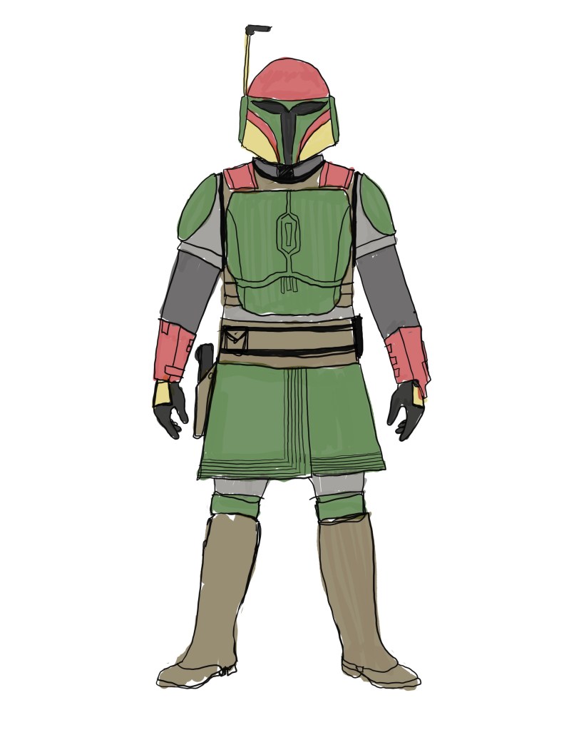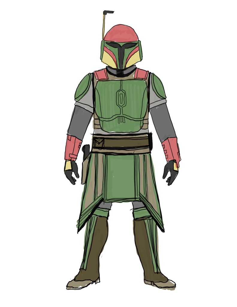 After doing A TON of reading and research online, I decided to try and modify the design to meet the requirements of the Mandalorian Mercs costuming club. This is DRAWING #2