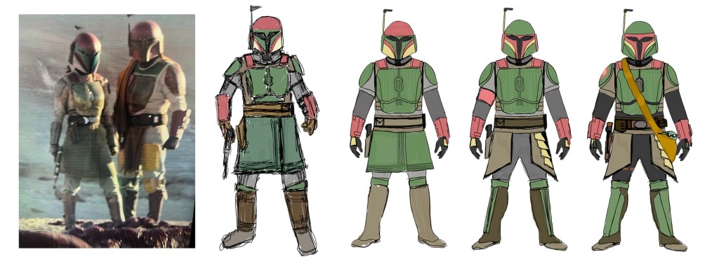 I started the design process off with a series of sketches. There is actually a Mando building tool online called MandoCreator that can help in visualizing colors and designs.