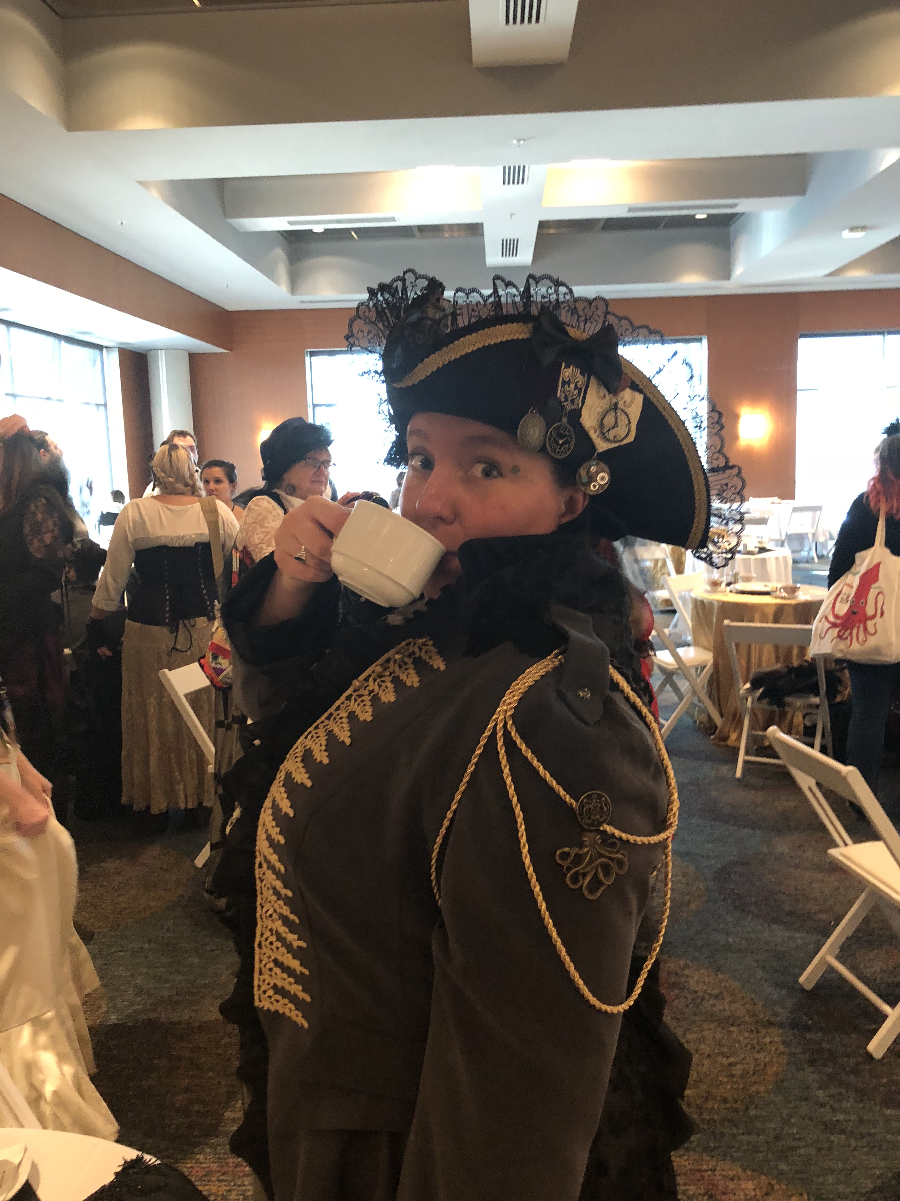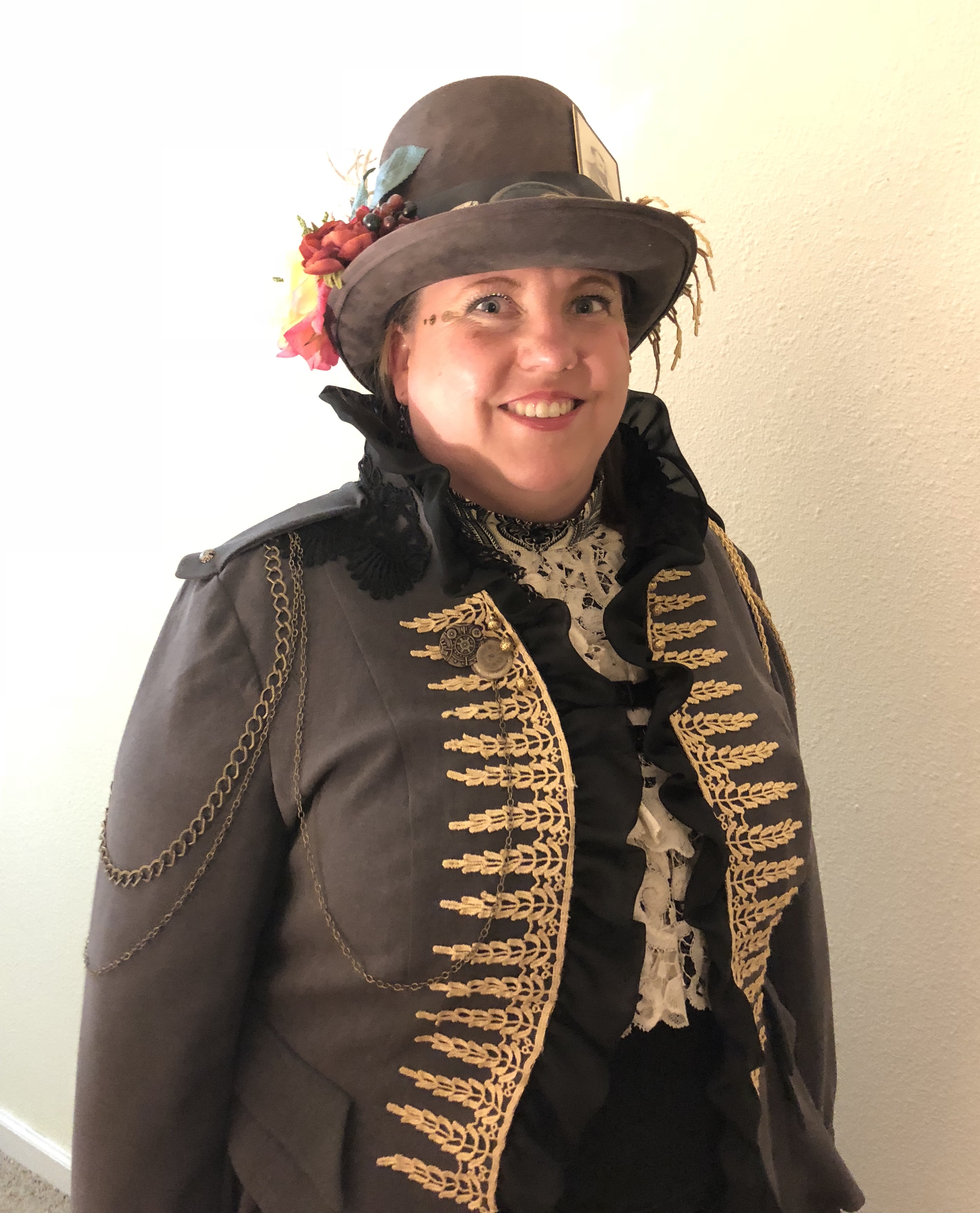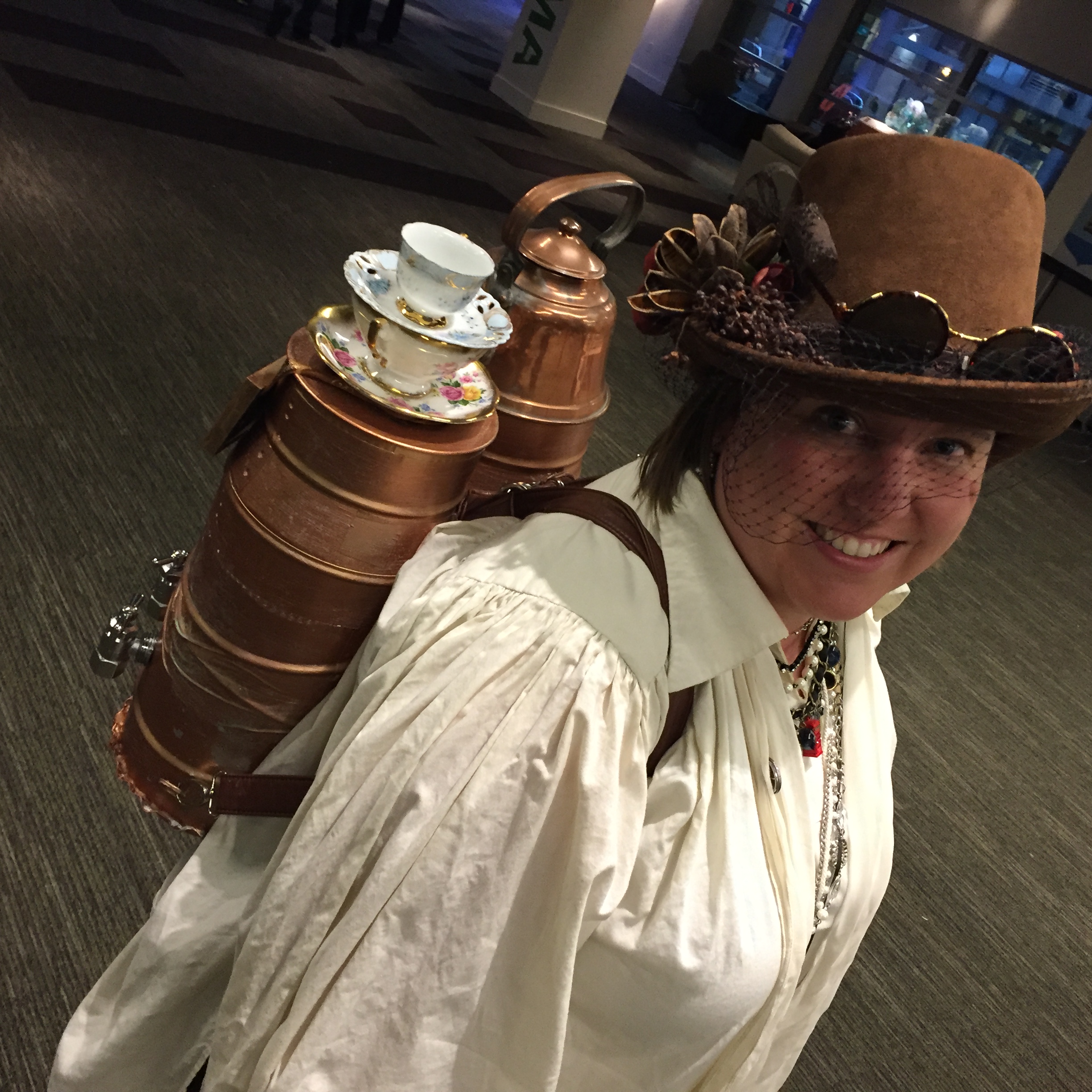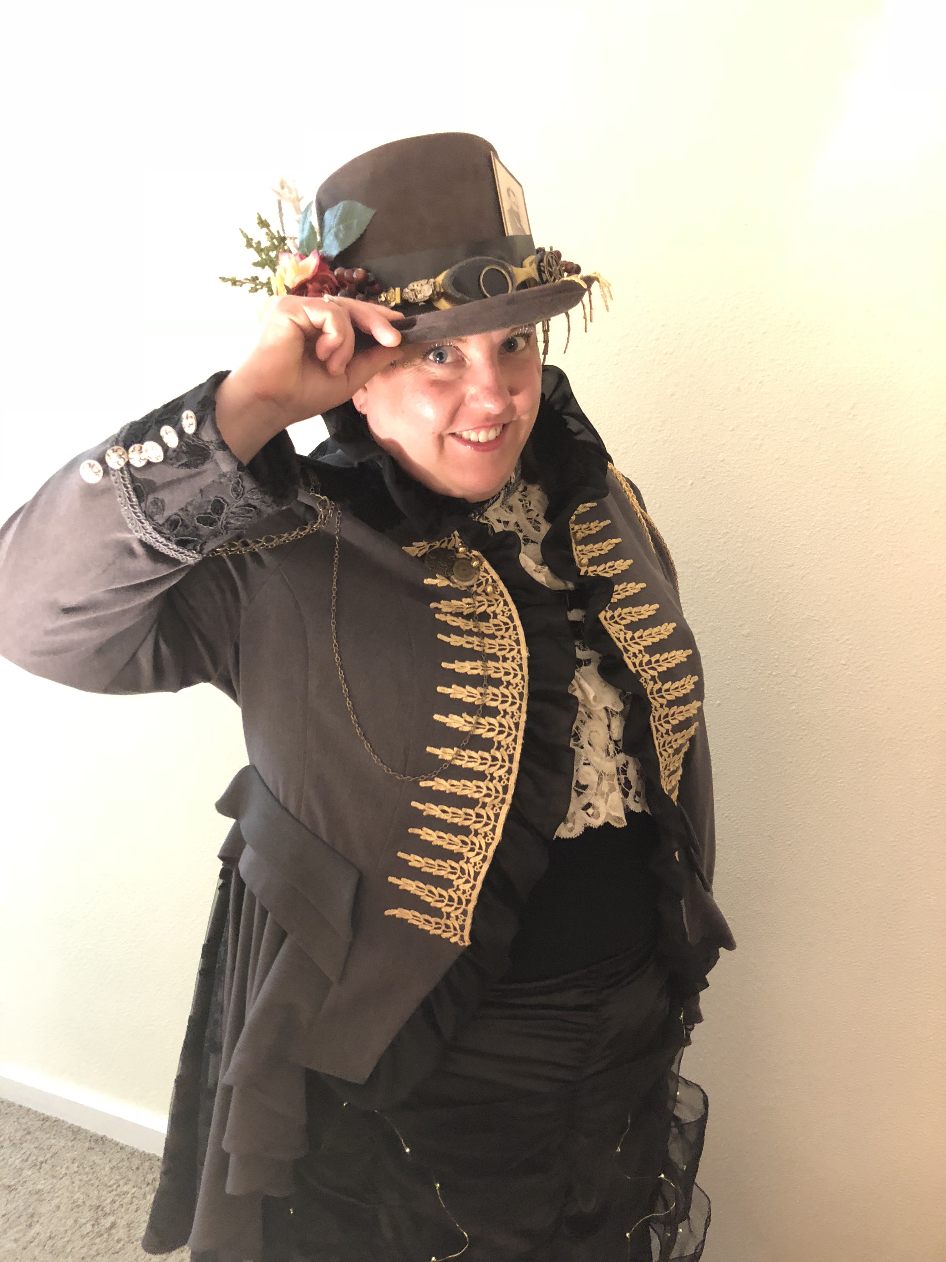 Unfortunately, the 2018 Steamposium was cancelled, so I wore the costume for Halloween instead. It did win the women’s section of a large Halloween party costume contest!