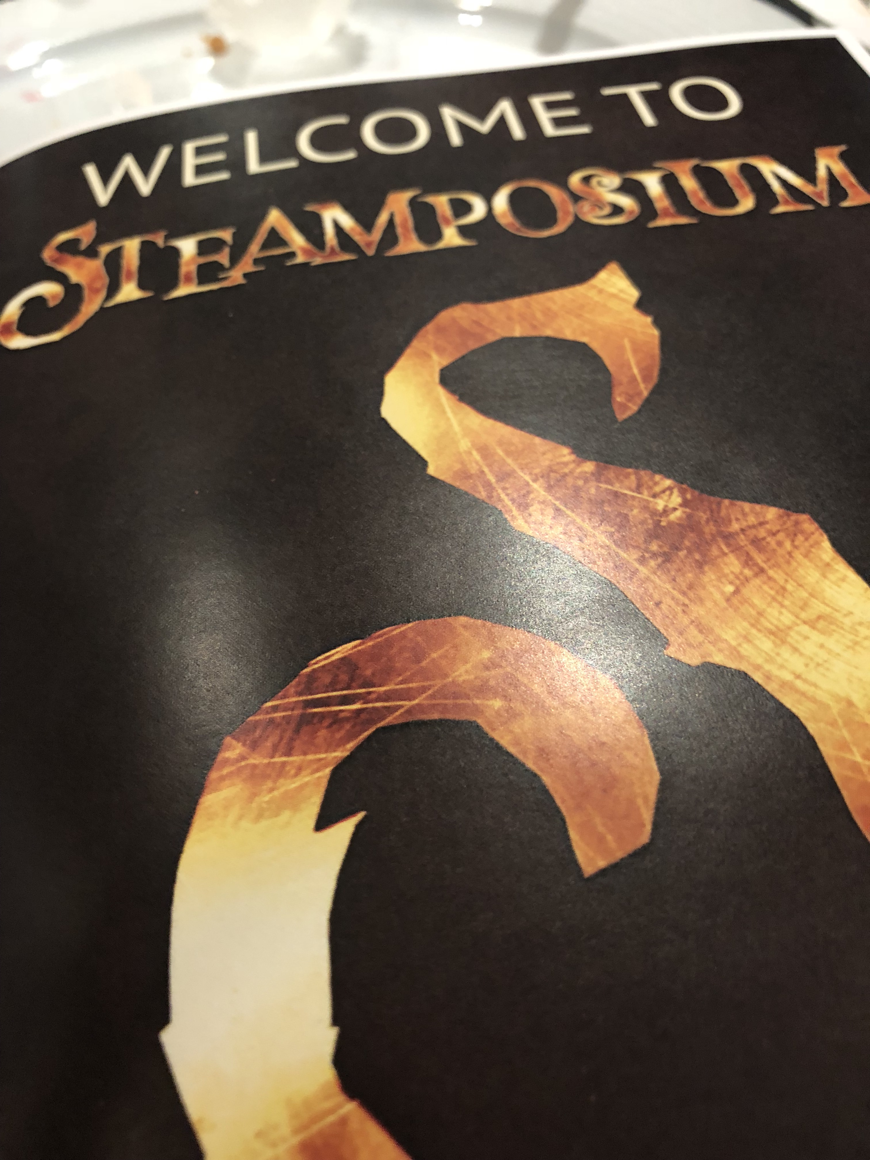Steamposium is a Seattle, WA, gathering of all things Steampunk. It’s a weekend, “con,” where like-minded folks dress up, go to classes, walk a showroom floor full of vendors and artists, and can even attend a tea party and fashion show (among other things).