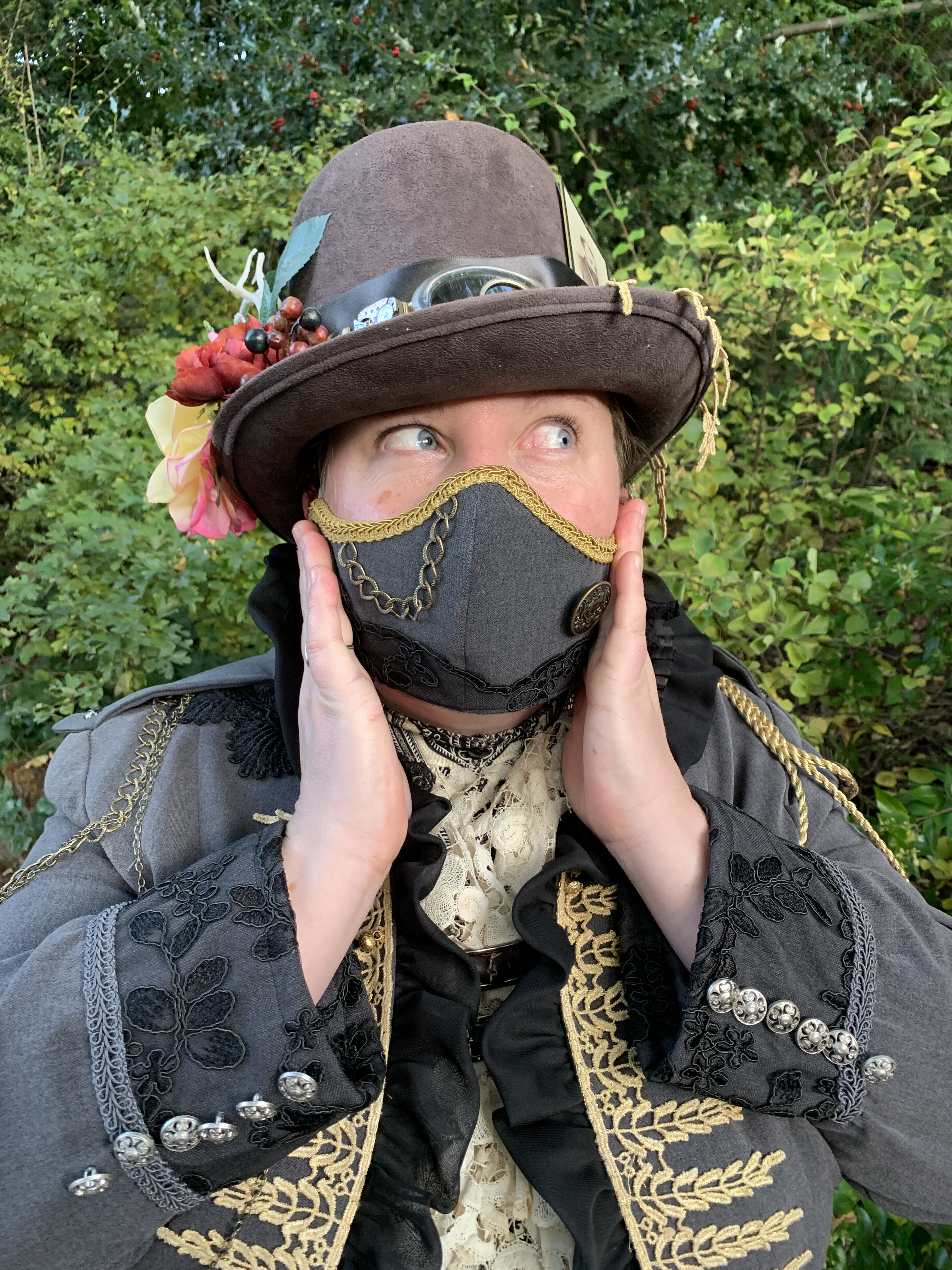 Of course with Halloween 2020 comes the addition of a FACE MASK to my much loved Steampunk outfit. Enjoy -mq
