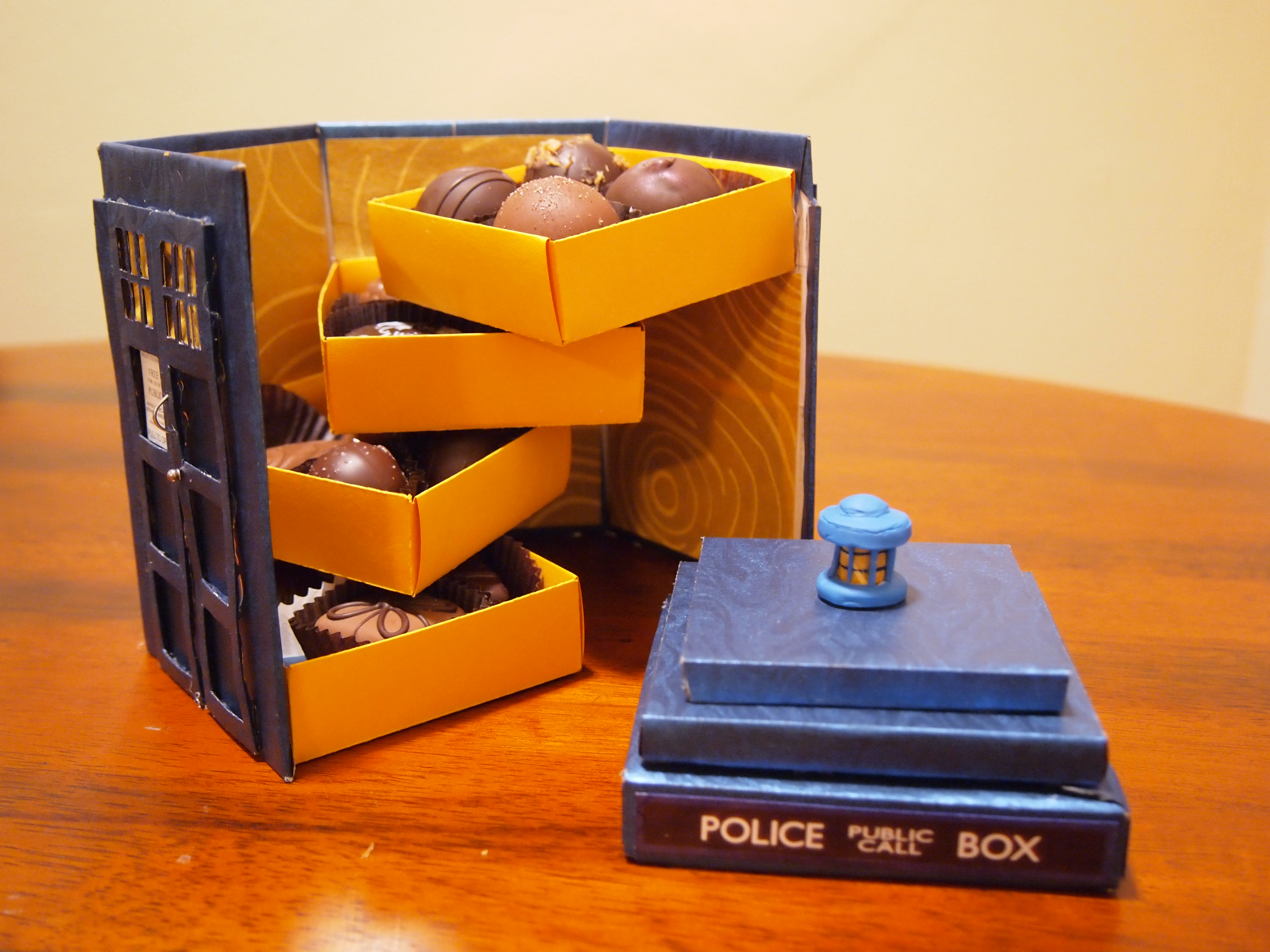 This little beauty was made for a Sweet Meet dessert bid/exchange activity. Really, it was a bit of a social experiment. I wanted to see who recognized it (pun intended) and hopefully geek out together. Alas, I was not at the right place in space and time, as no one got the reference to Doctor Who. However, it did get picked up on FaceBook by a Doctor Who fan page, and then I found my peeps!