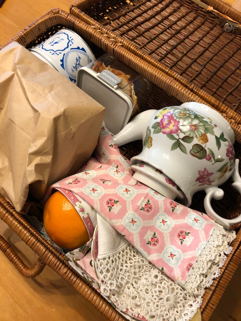 AUG 2019 – This is the first time I took my tea things on the road, and did an outdoor picnic hamper.