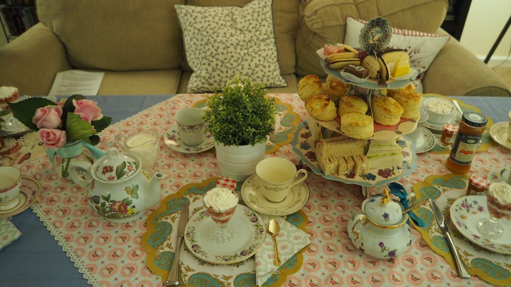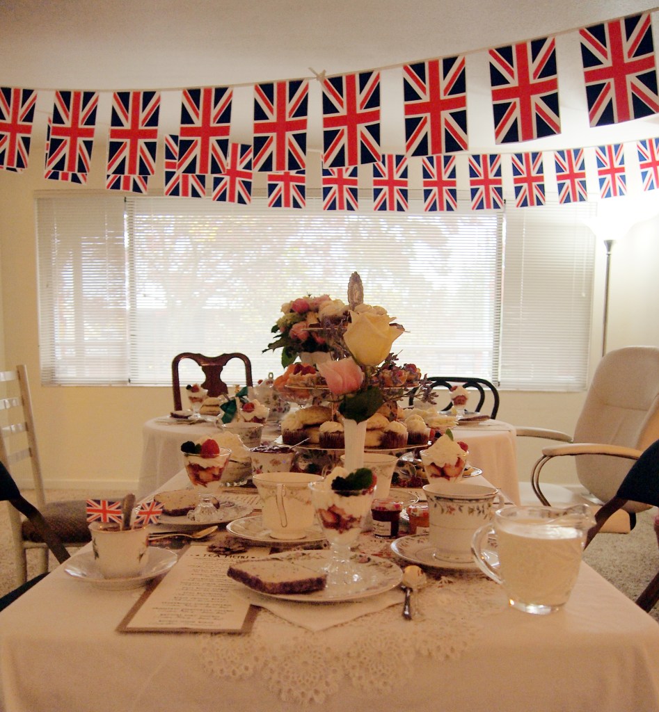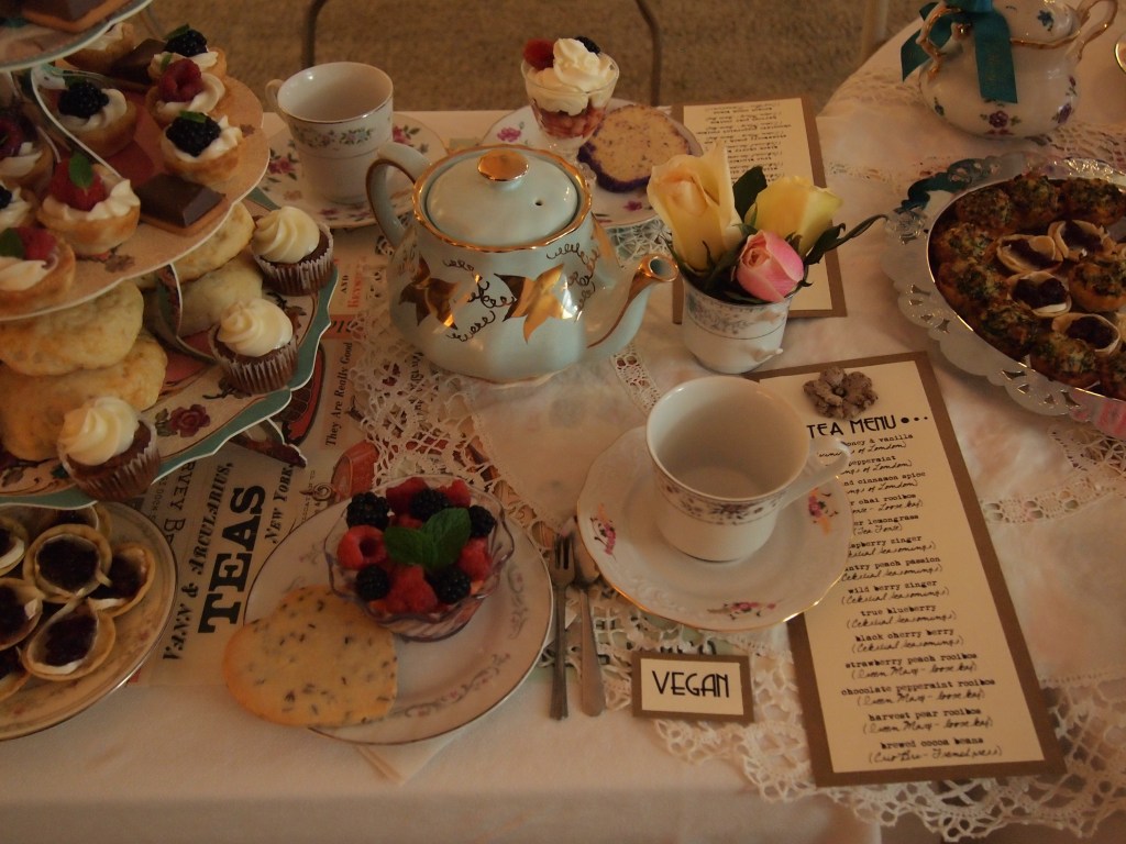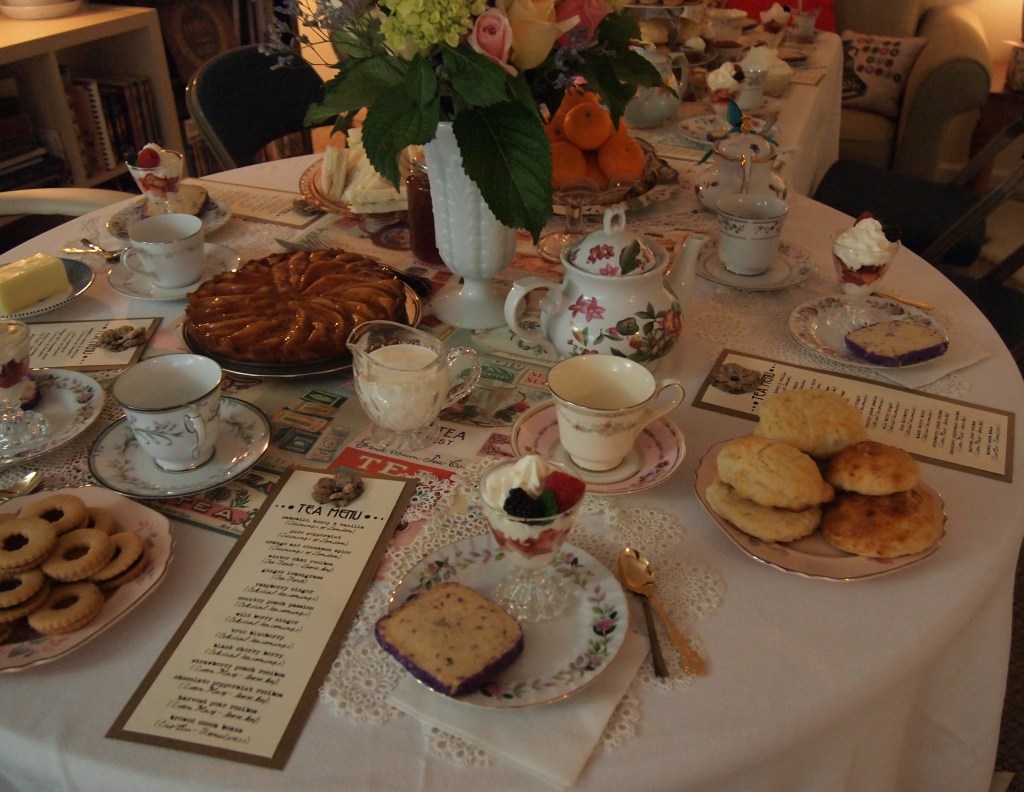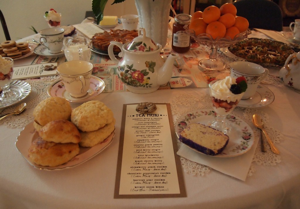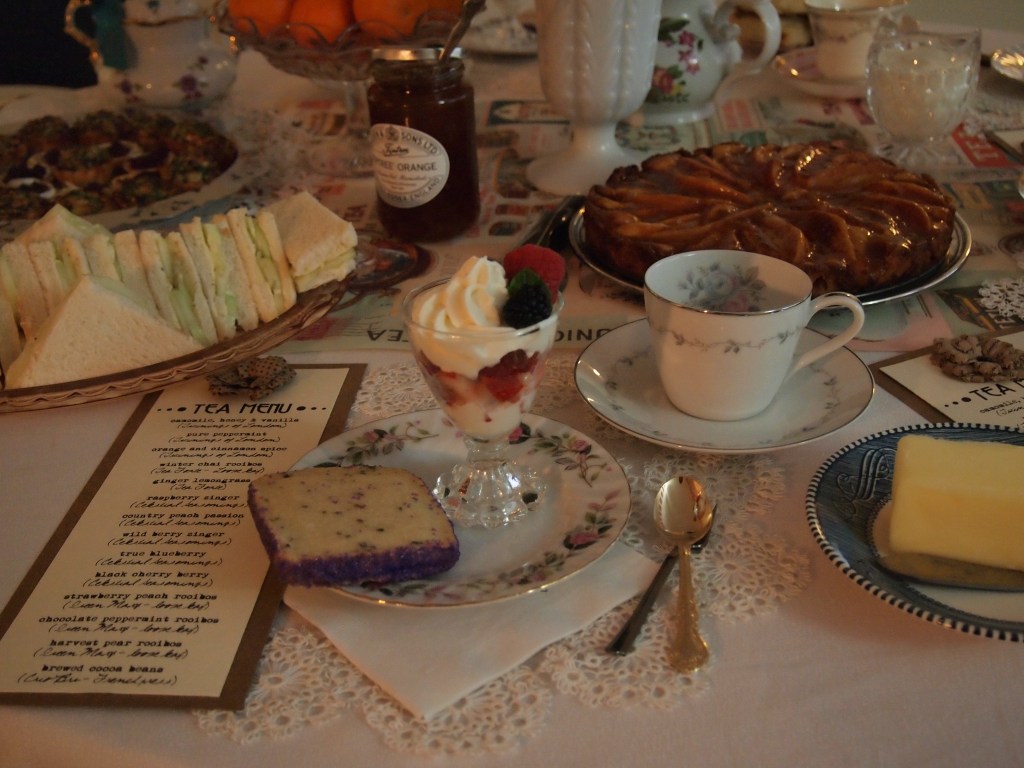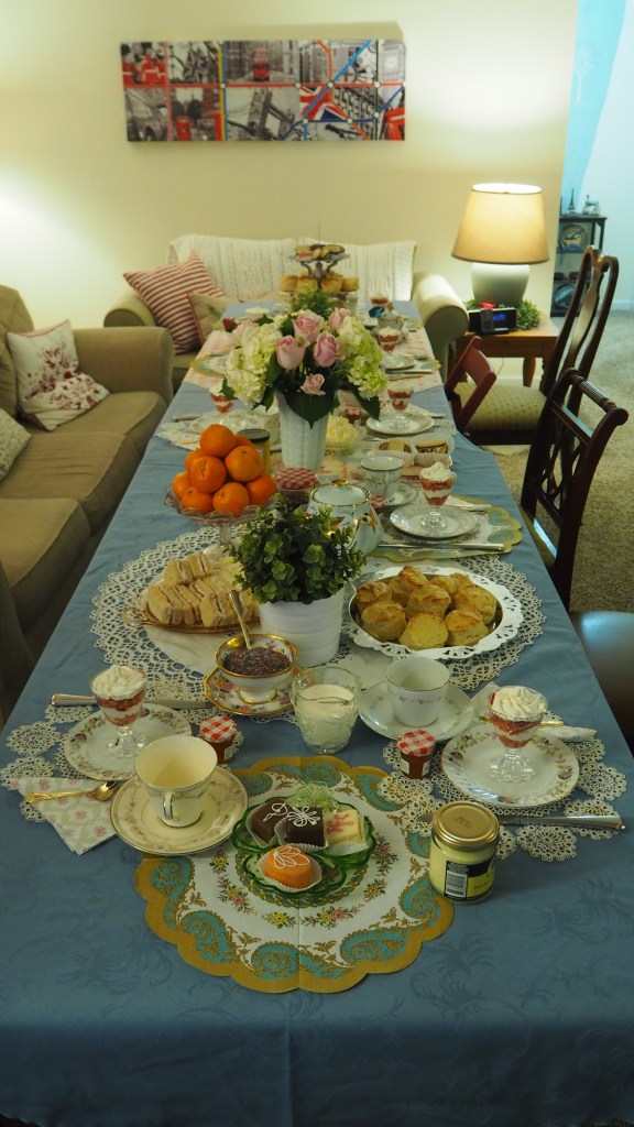 This is the largest and most elaborate tea party production that I have put on. My dishes are an eclectic lot, mostly thrifted from local Goodwill stores – including a vintage UK teapot!