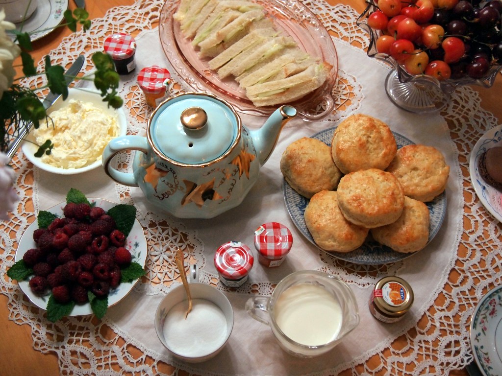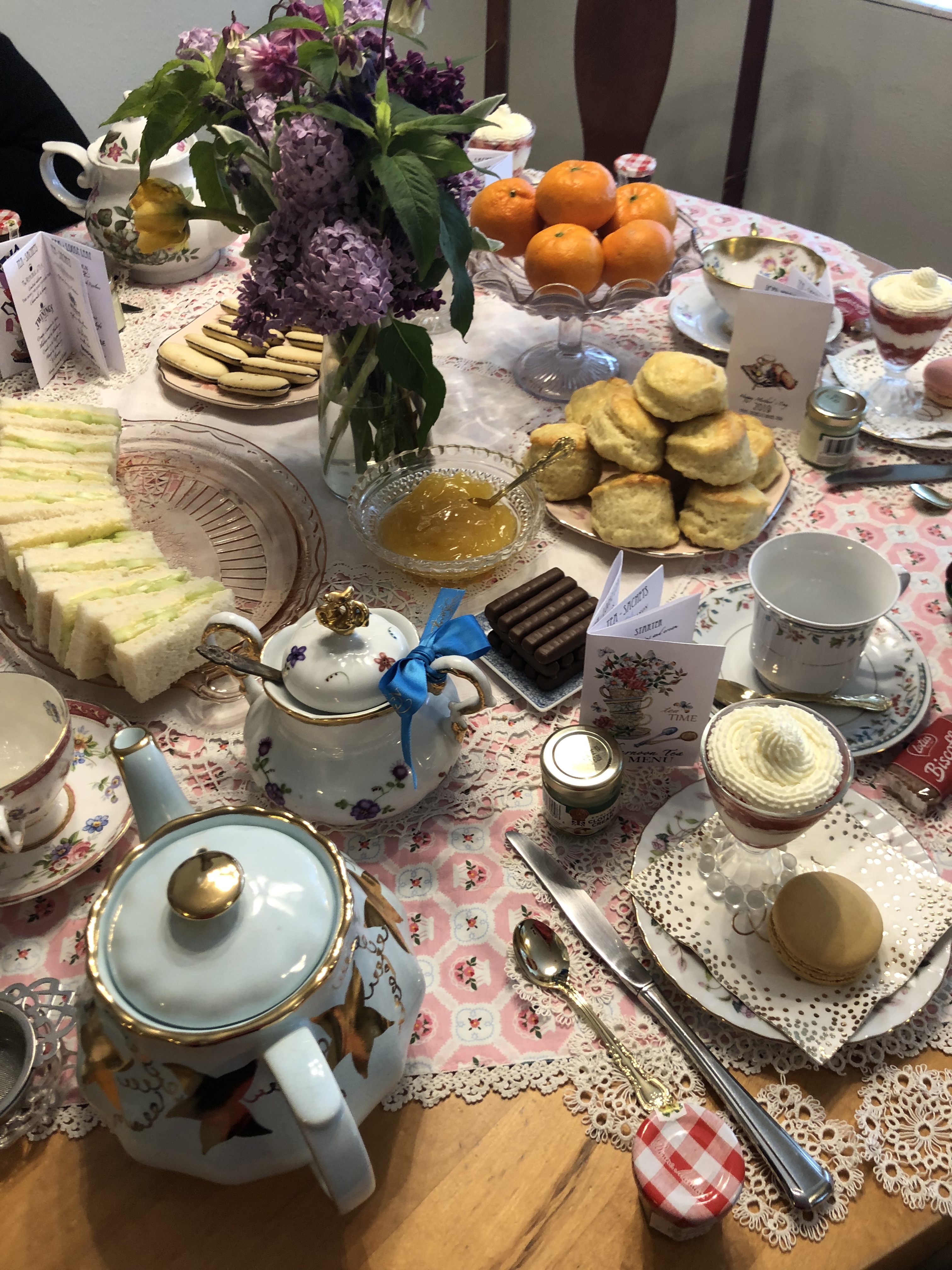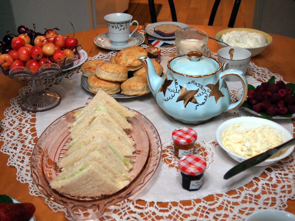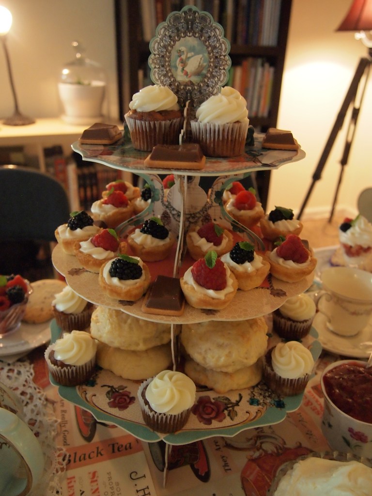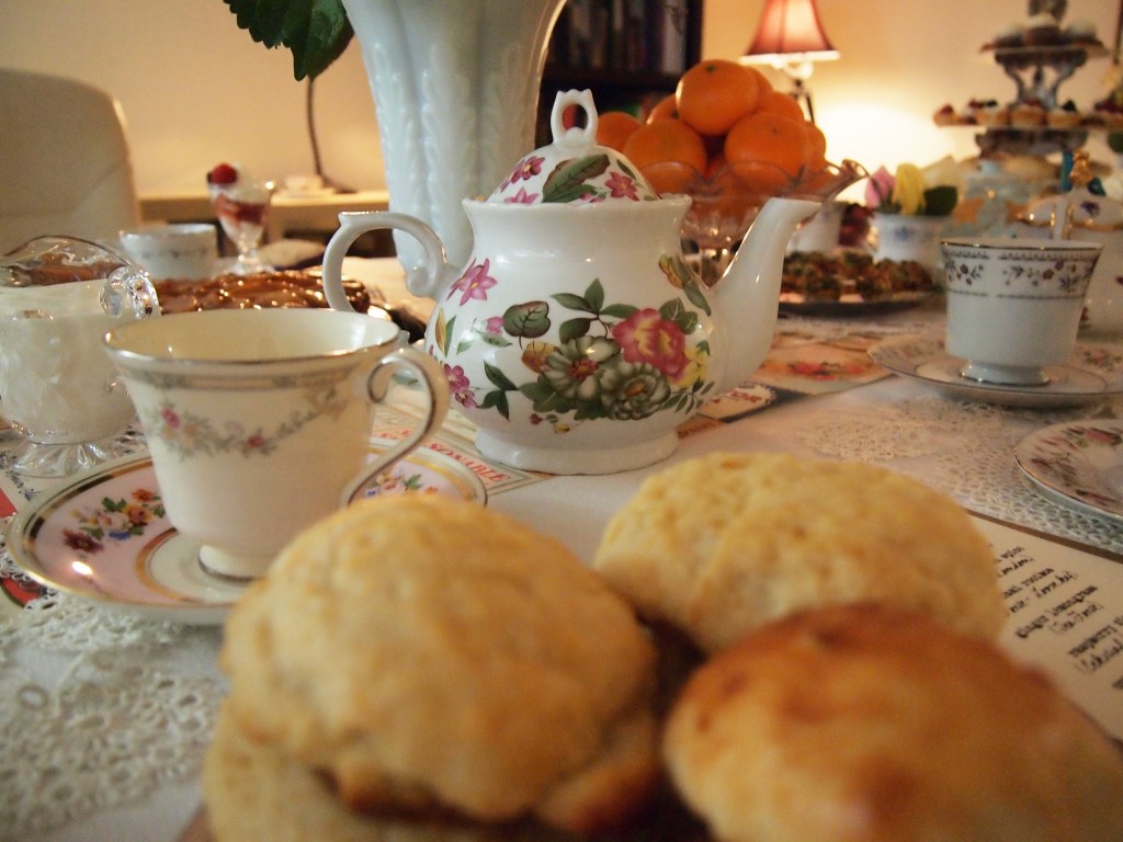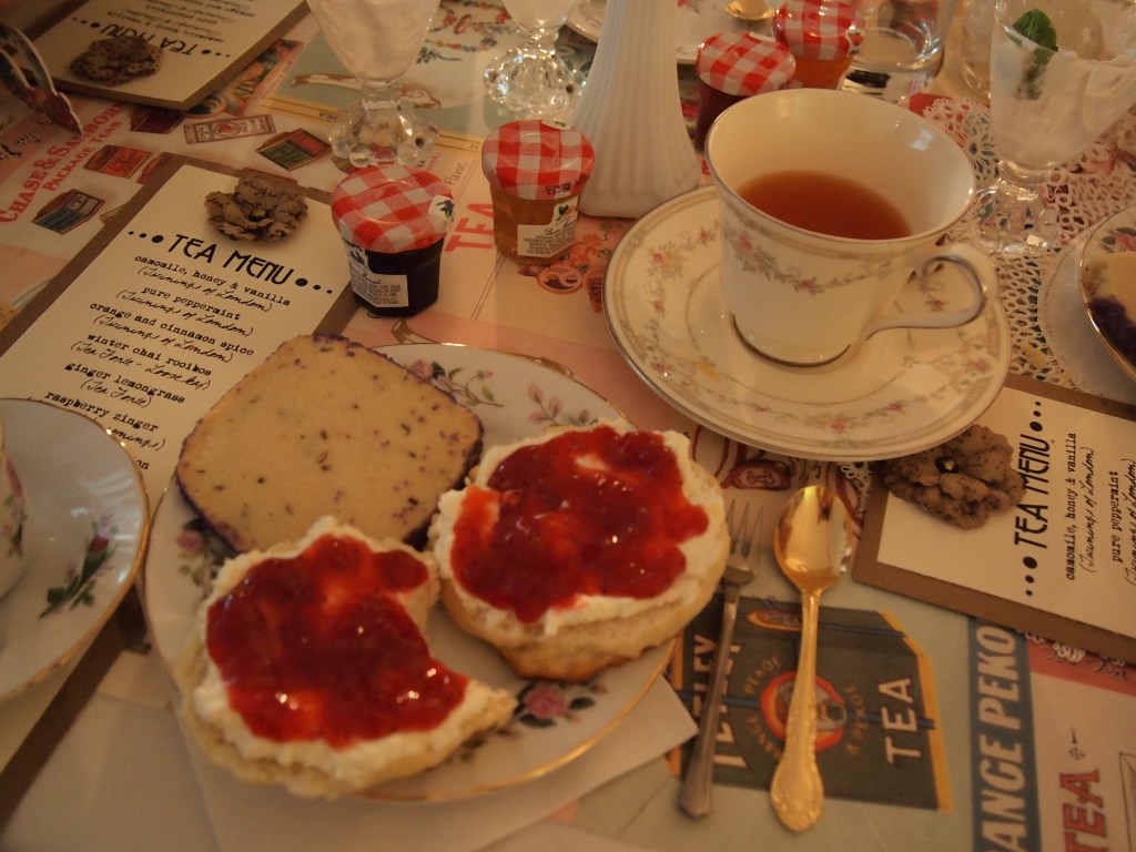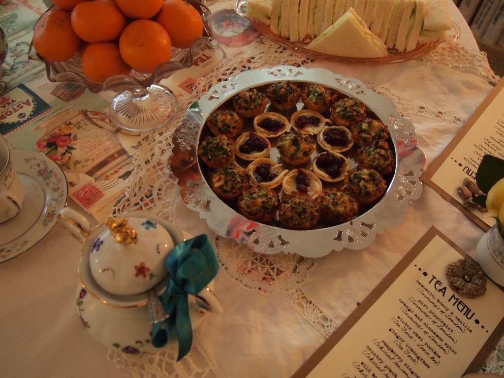 This is the largest and most elaborate tea party production that I have put on. My dishes are an eclectic lot, mostly thrifted from local Goodwill stores – including a vintage UK teapot!