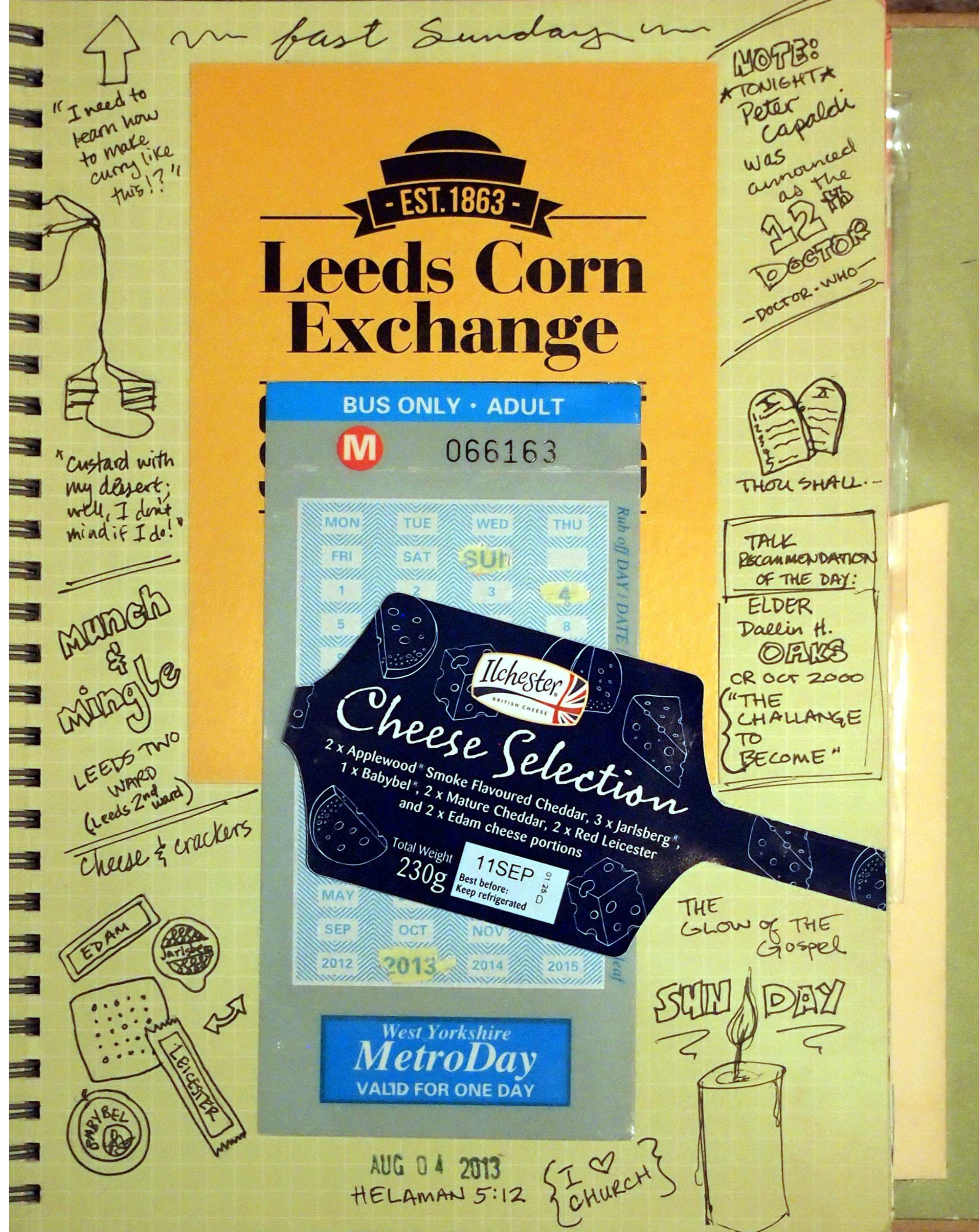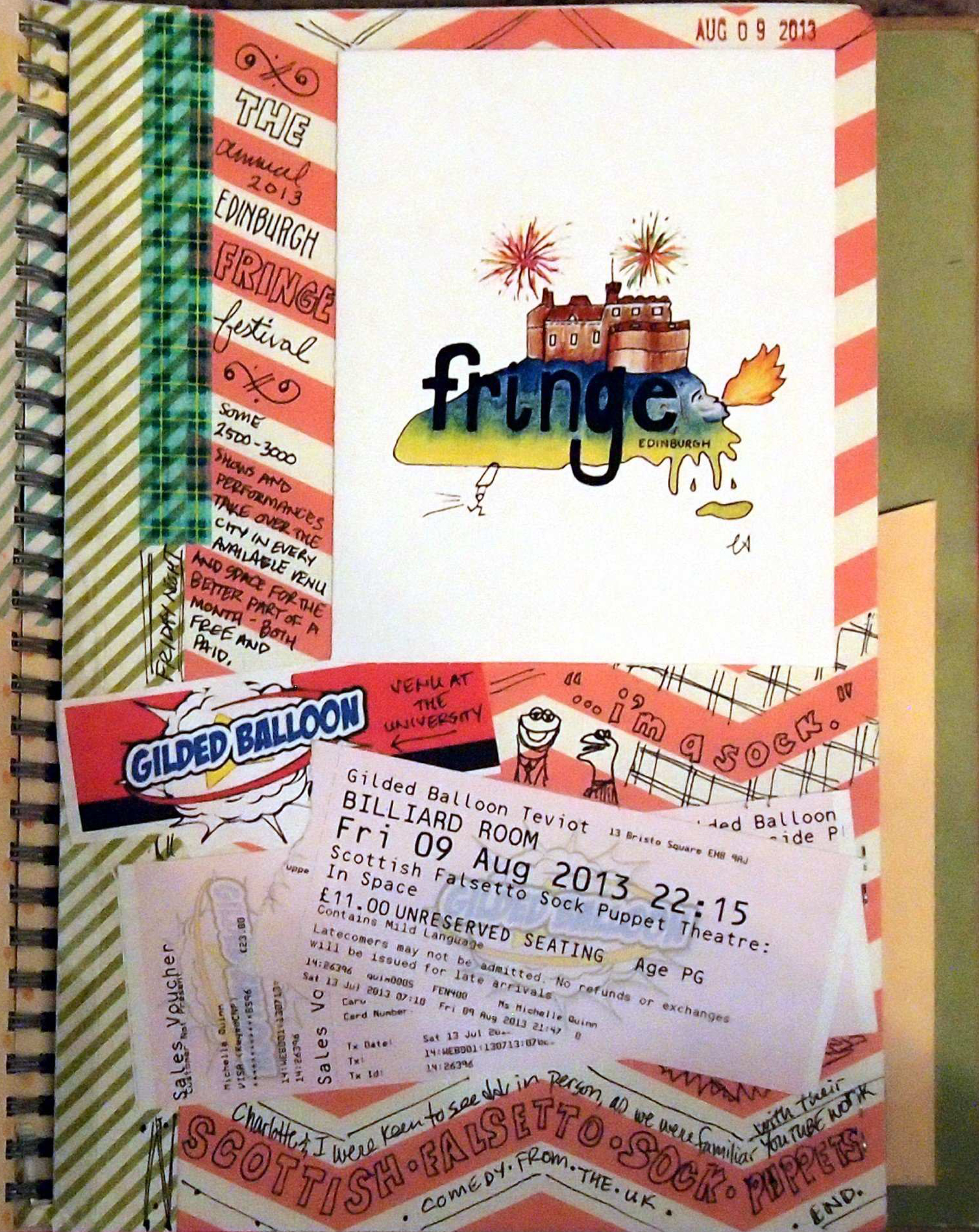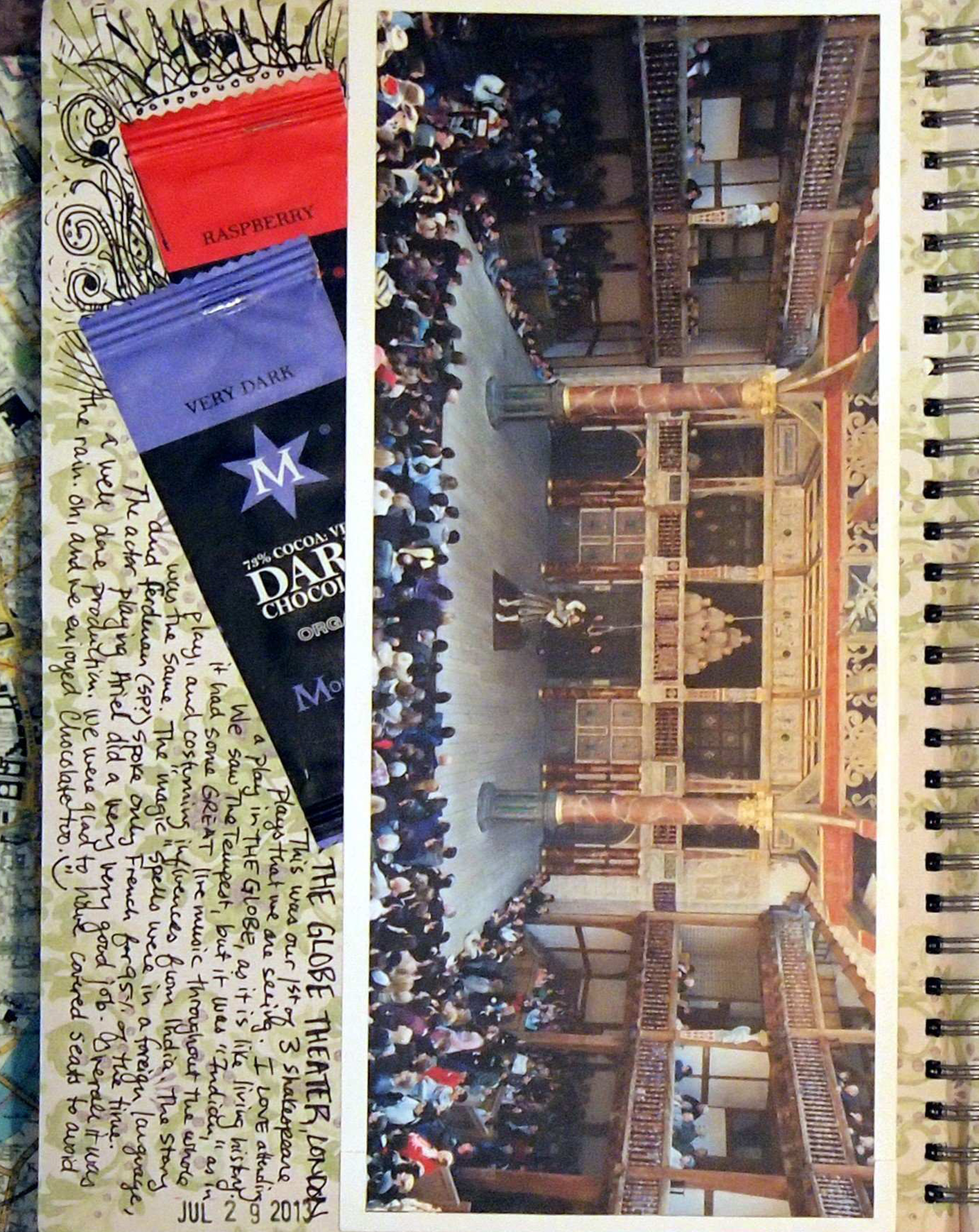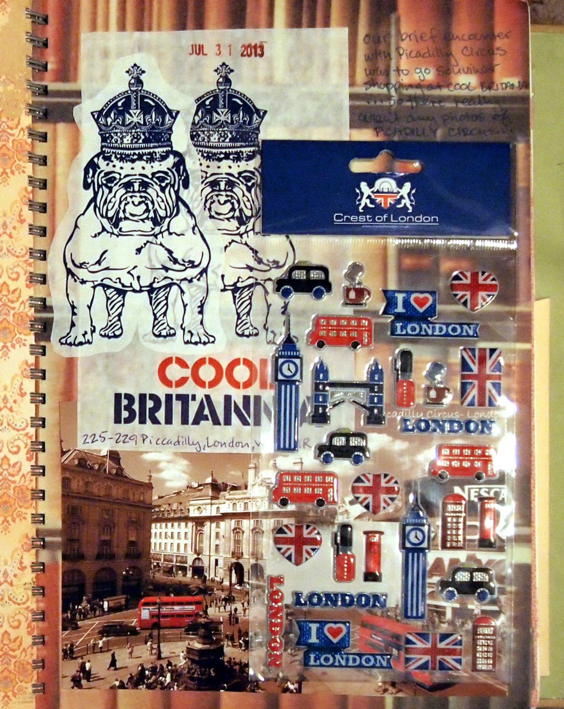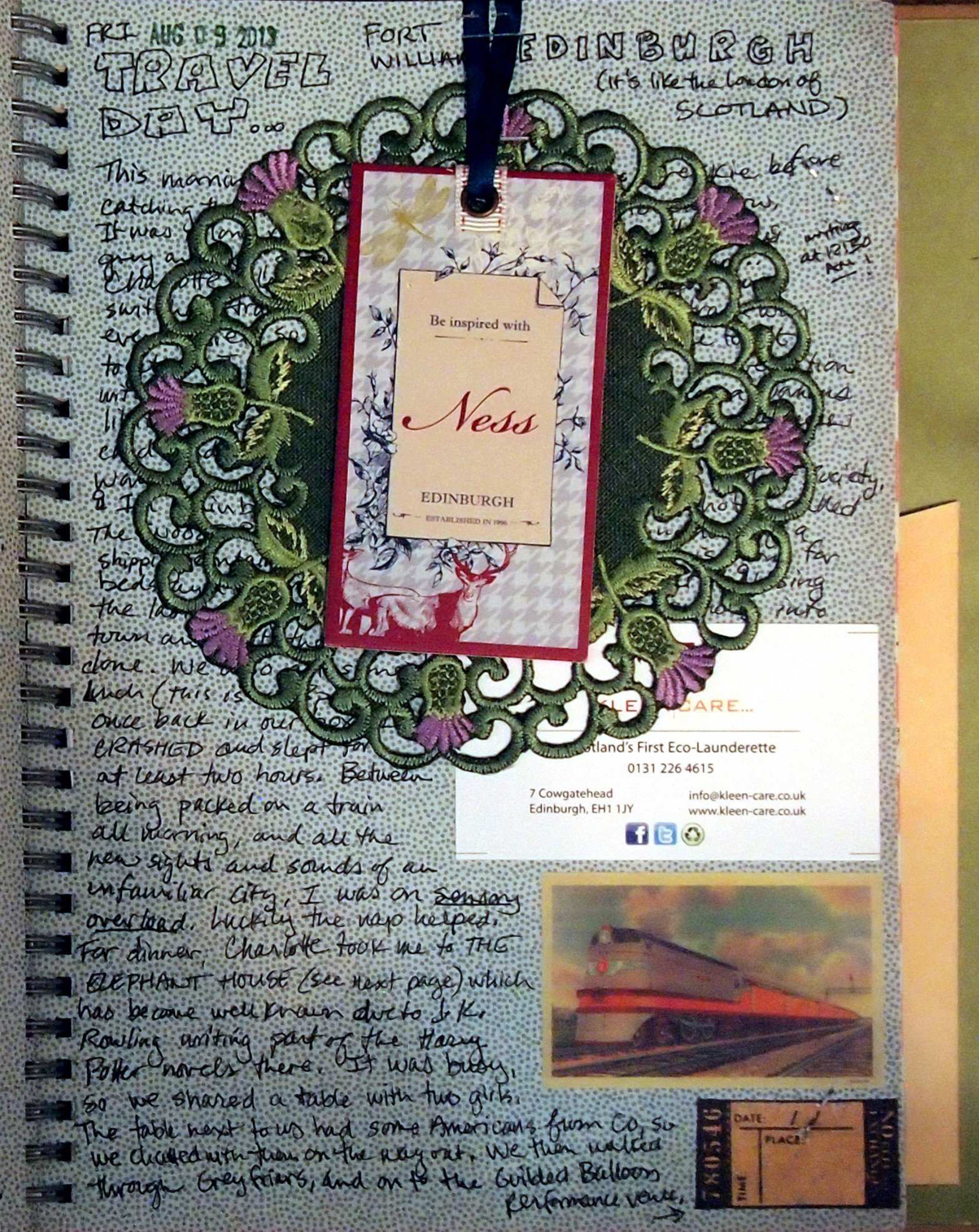 K&Company makes a blank book of 8×10″ spiral bound scrapbooking paper called a Smash Book. This is the base from which I build each travel book. Each book is made one-the-go with many late-night cutting-and-glueing sessions after a day of touring, or journaling in a cafe or on the train. As such, there are no photos from the trip included in these pages. After the trip, the Smash Book is digitized, and photos are added in a special photo album section.
